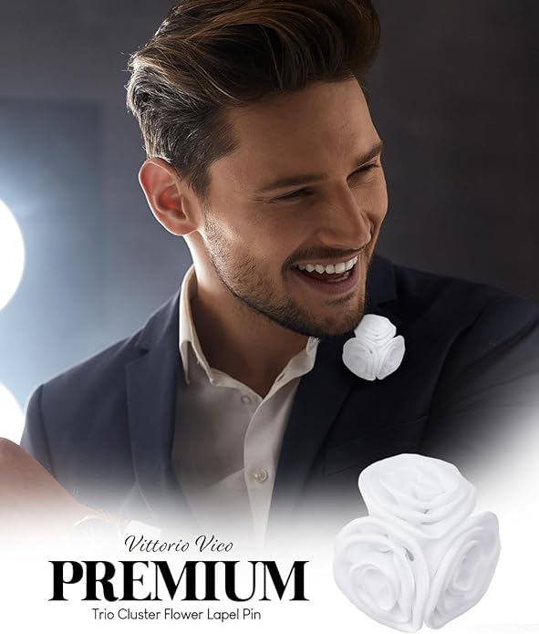 • STYLISH: Sometimes the smallest details can make the biggest difference. Men's Trio Cluster flower lapel pin for suits is the perfect suit accessory for your blazer. The stylish pins for men add a stylish touch to your formal wear. You can even add this to your tie as a tie pin!