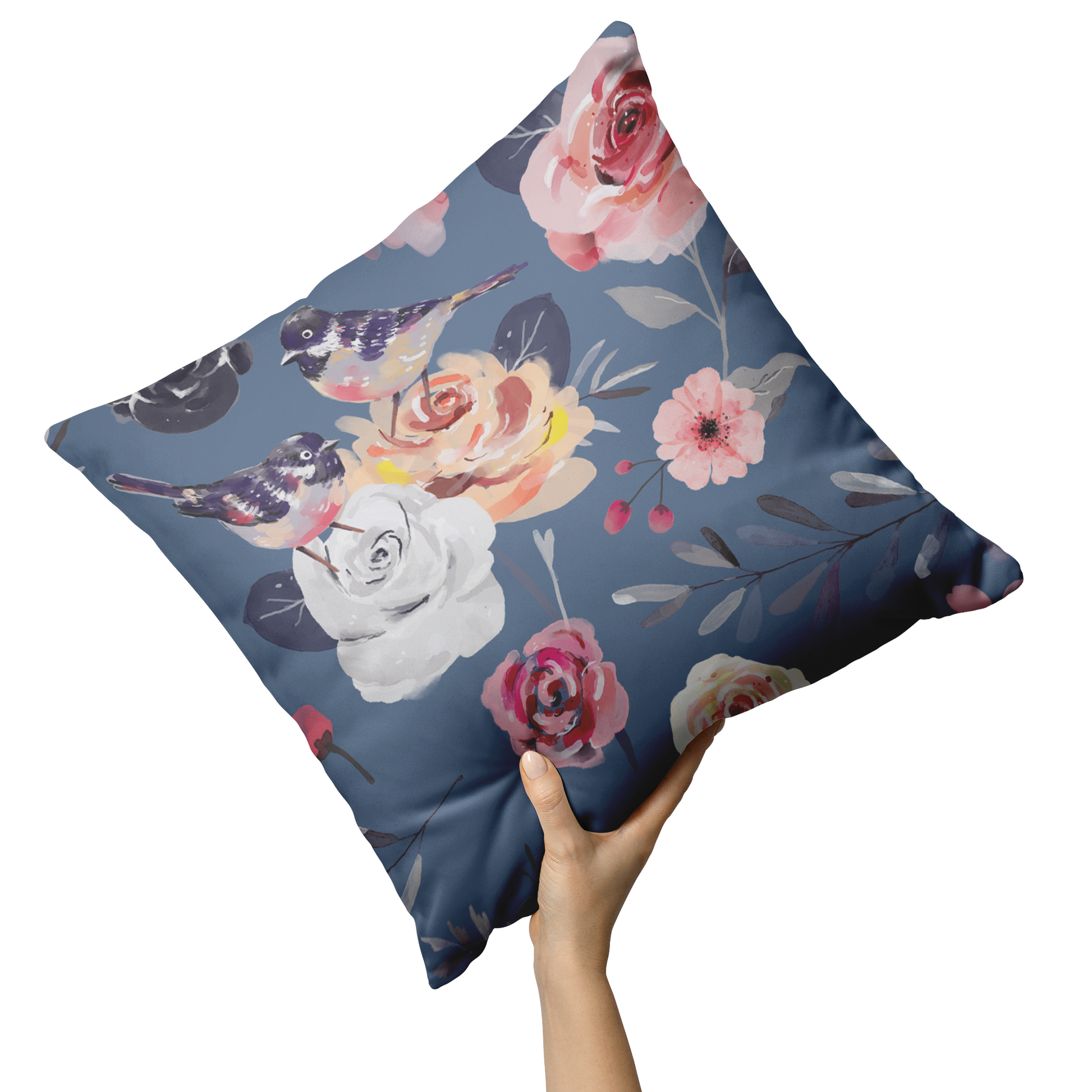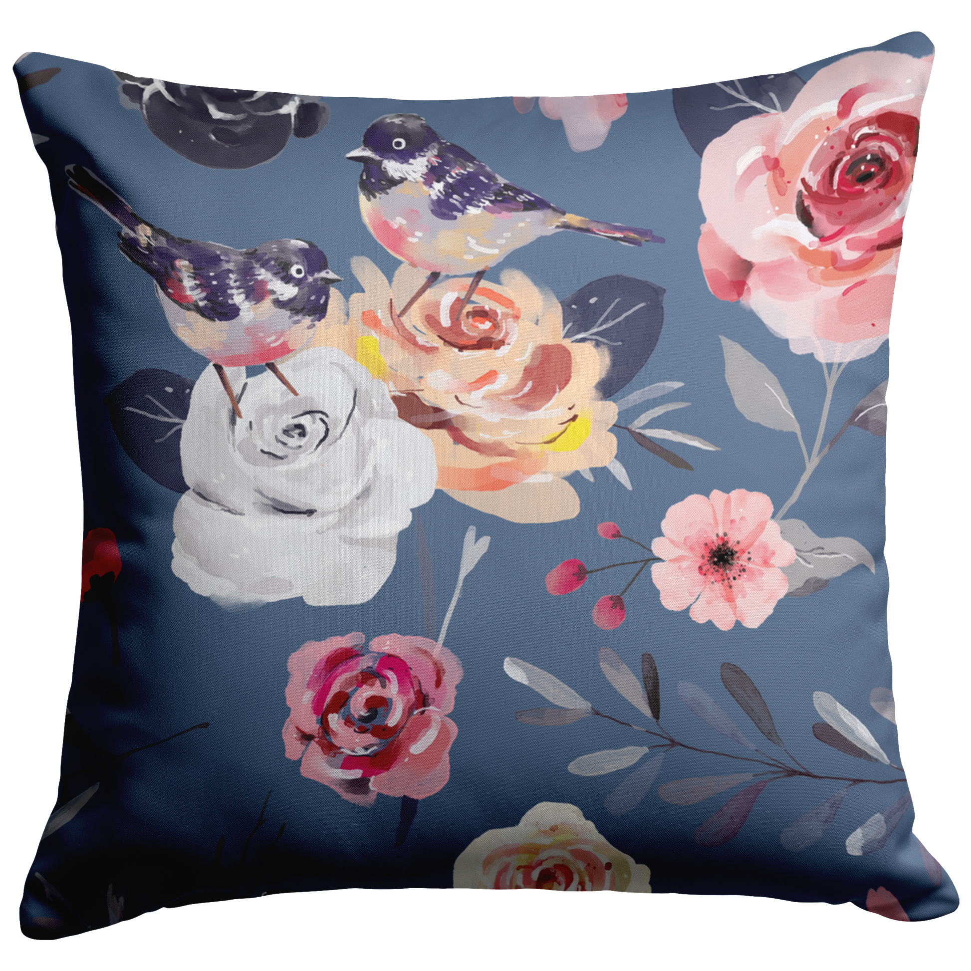Transform your space with our “Watercolor Birds and Florals” Throw Pillow, featuring a delicate image of watercolor birds and florals on a powder blue background. Crafted from 100% polyester microfiber, the fabric is soft, durable, and wrinkle-resistant. The hidden zipper closure ensures easy insertion and removal of the pillow insert.