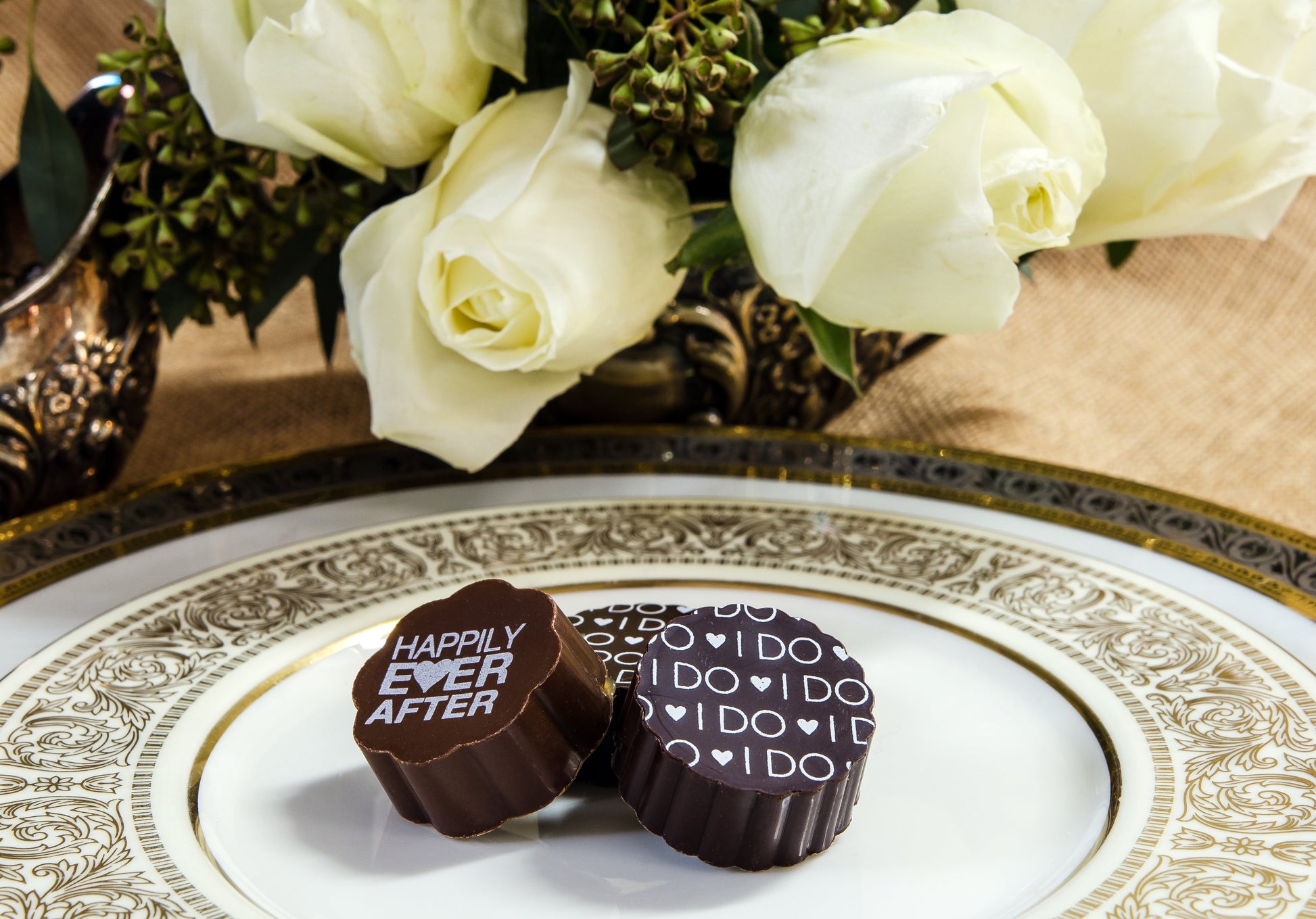 Happily Ever After and ‘I do I do’ - mix of milk and dark chocolate filled with our best-selling vanilla sea salt caramel - ask us about custom designs and flavors.