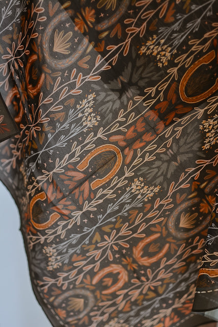 Inspired by western heritage and designed in Oregon, this western silk scarf blends wild west spirit with effortless style. Made from a soft and luxurious silk and tencel blend, it’s ultra-vibrant, lightweight, and flowy — the perfect cowgirl accessory for year-round wear. Tie it around your neck, in your hair, or on your bag for a pop of western charm.