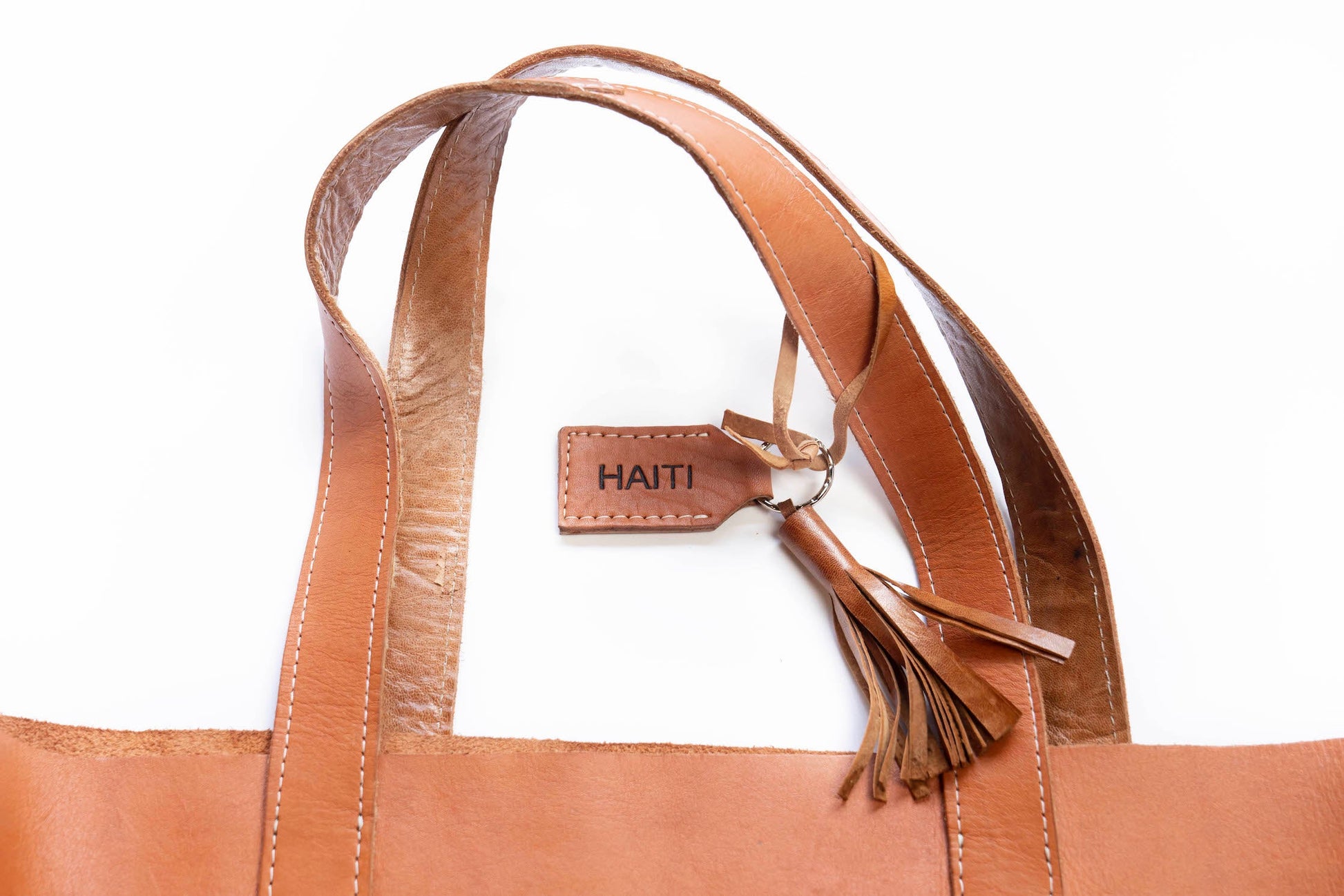 It has both an external pocket perfect for things like a phone and keys and an equally useful internal pocket as well. Finished off with a detachable chunky leather tassel and leather "Haiti" tag, because we're a little proud of that fact!
