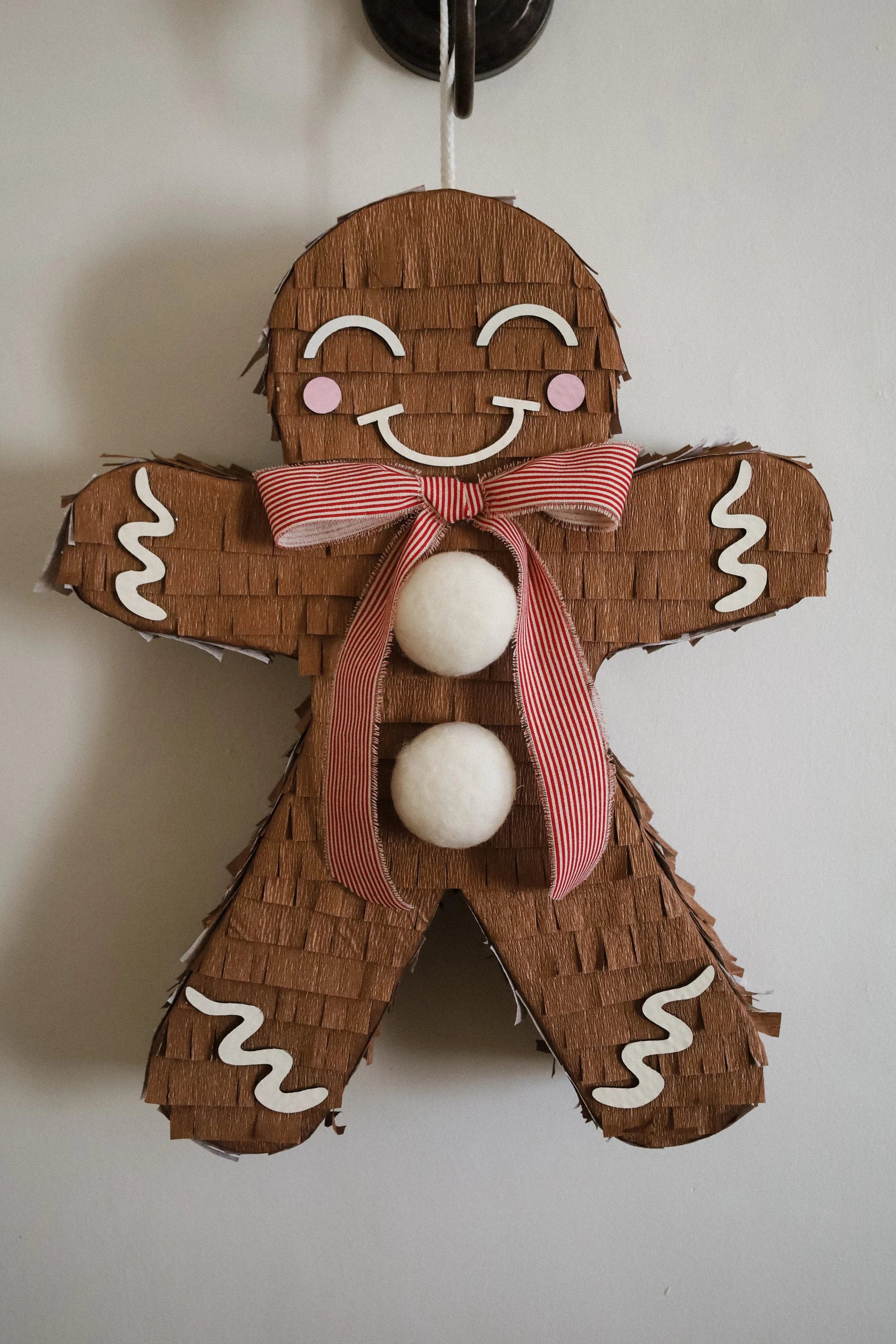 🍪 Gingerbread Man Piñata – Handmade Christmas Party Decoration & Candy Holder
