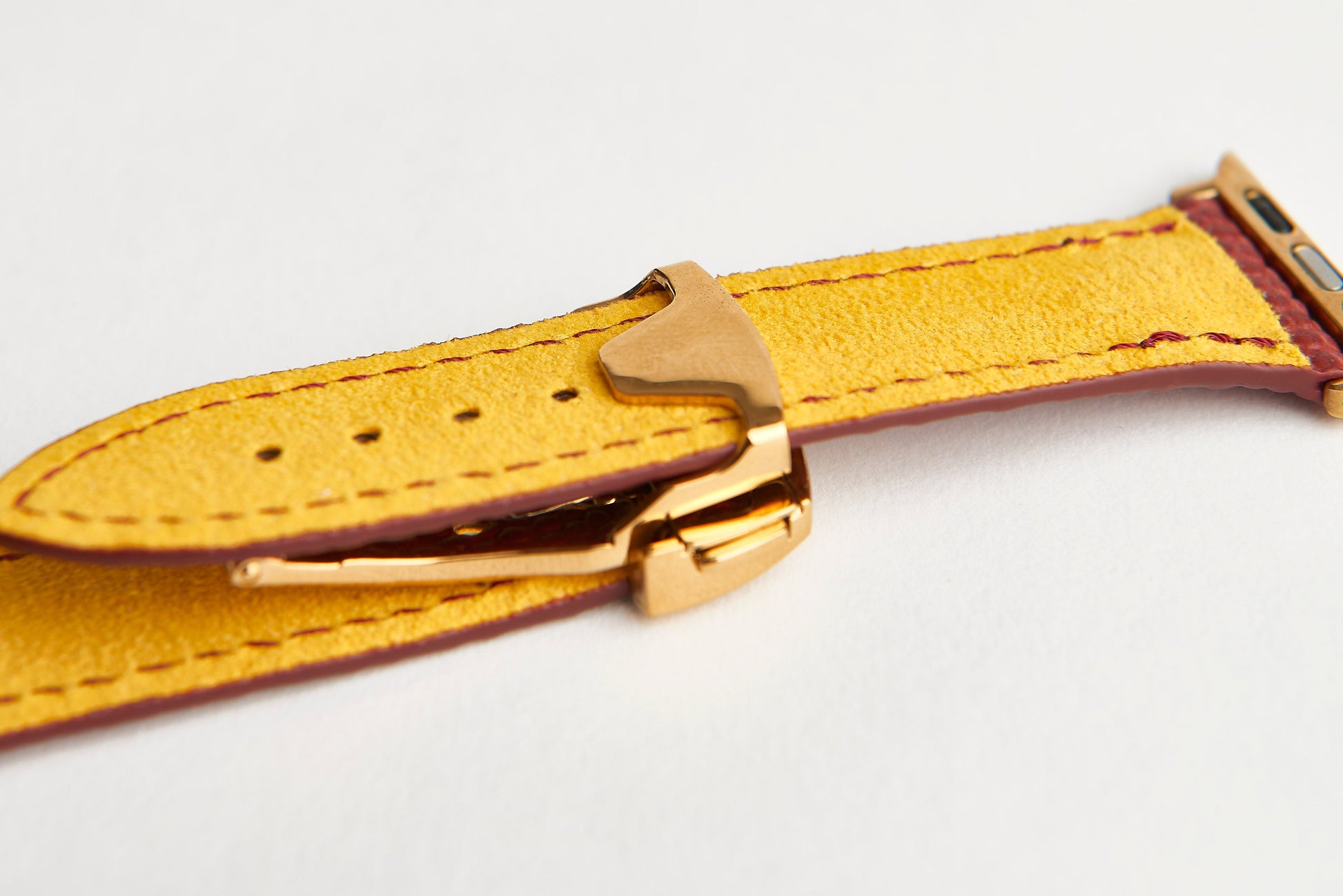Elevate your Apple Watch to a true luxury timepiece. This elegant band is crafted in structured Maroon Epsom leather, providing the sophisticated aesthetic and enduring quality found in the most exclusive design houses.