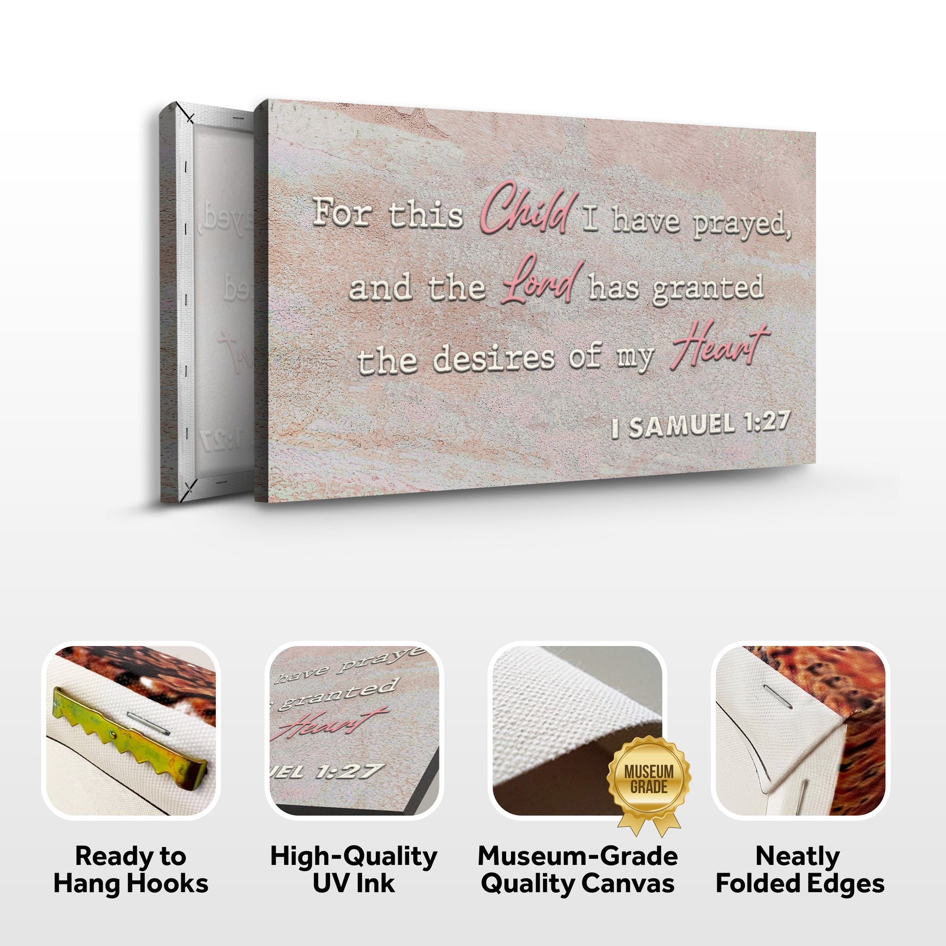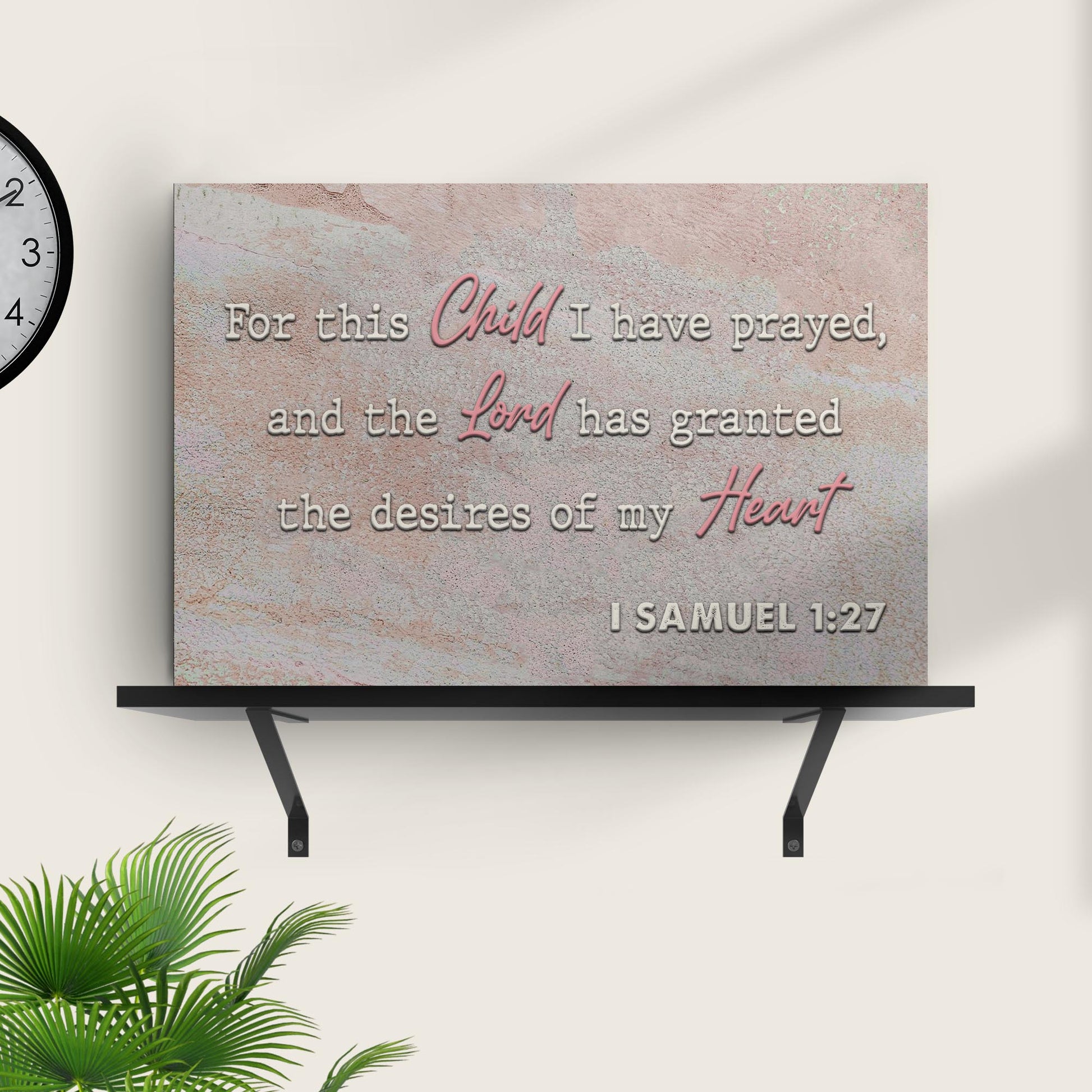 This sign will serve as a constant reminder to pray for your own children and to have faith in God's good purposes for their life. Get this 1 Samuel 1:27 For This Child I Have Prayed Wall Art right away, don't wait any longer!