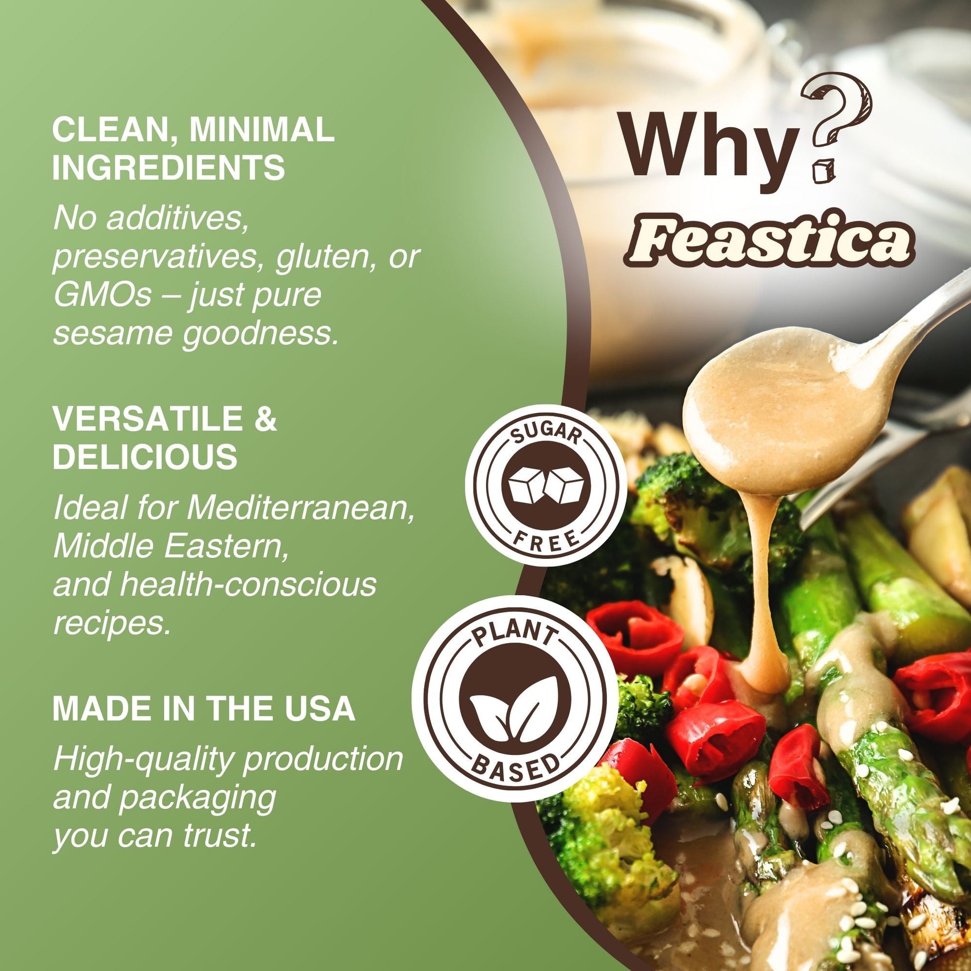 - 100% Organic Sesame Seeds – Smooth, creamy, and stone-ground for rich flavor.