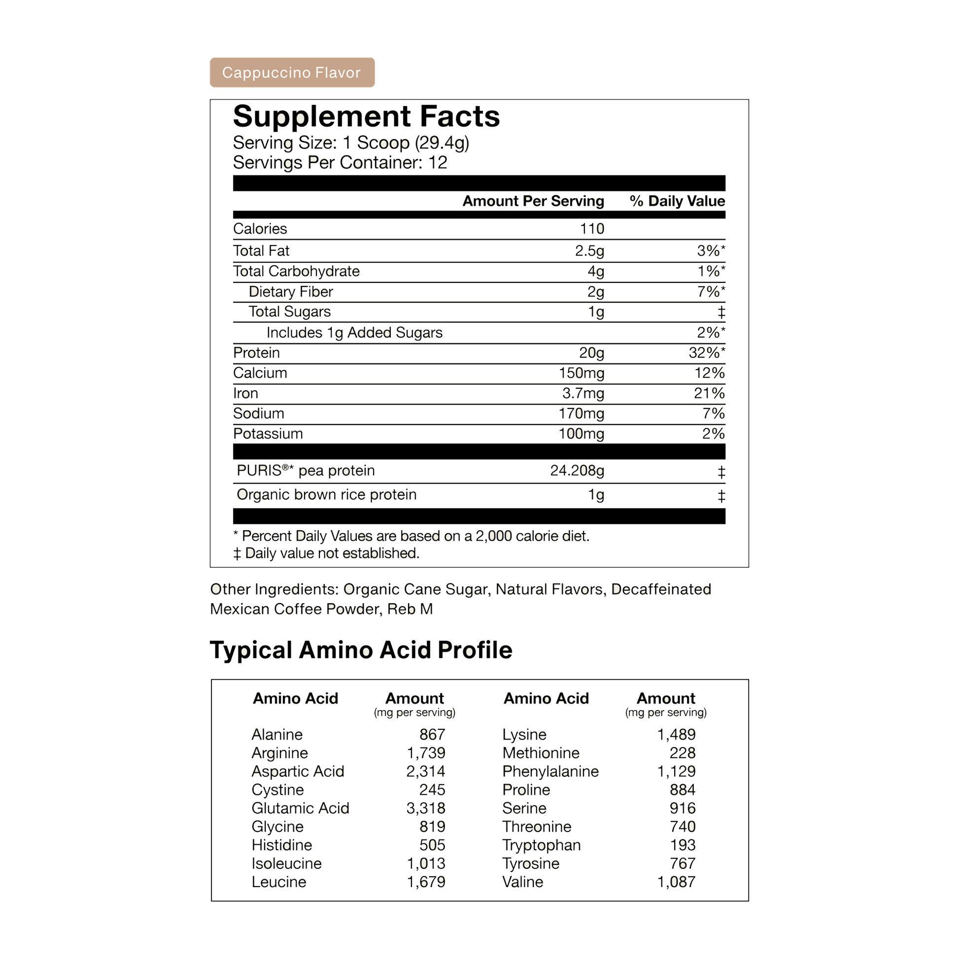 Consistency unlocks results, and variety helps you stay consistent. Our limited-edition Vegan Protein Powder in Cappuccino flavor, features the same clean, effective 100% Plant-Based Protein you trust. This smooth, coffee-inspired blend delivers a complete amino acid profile from pea and brown rice protein, with no artificial sweeteners, gums, or fillers. With a smooth cappuccino taste, it’s perfect for upgrading your post-workout recovery shake or daily coffee ritual—without compromising on quality.