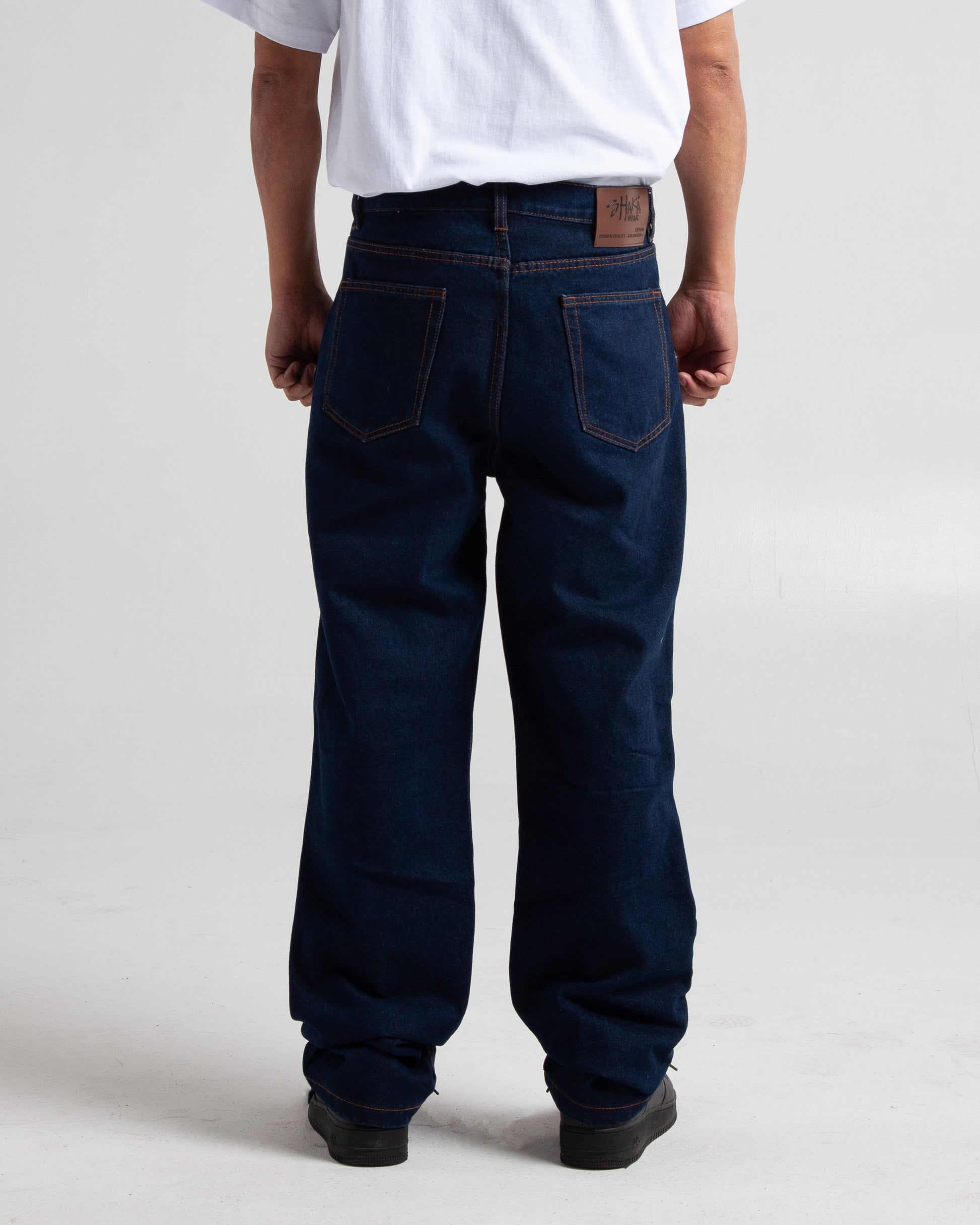 Shaka Wear's denim comes in two choices, raw and stone washed. Shaka Wear's raw denim comes in three colors, black, raw black, and indigo, while the stone washed denim comes in two colors, medium and light blue. Shaka Wear's denim allows the wearer to personalize the pants to their unique shape, with creases and fade marks forming to their body type. Simple, straight fit, Shaka Wear bringing you a comfortable, aesthetically beautiful streetwear look.