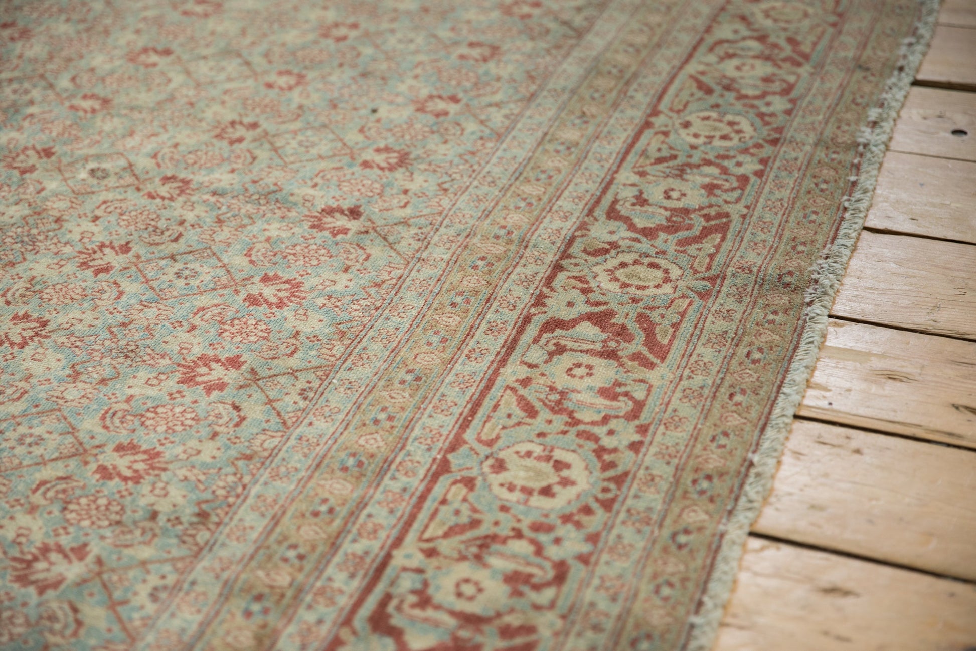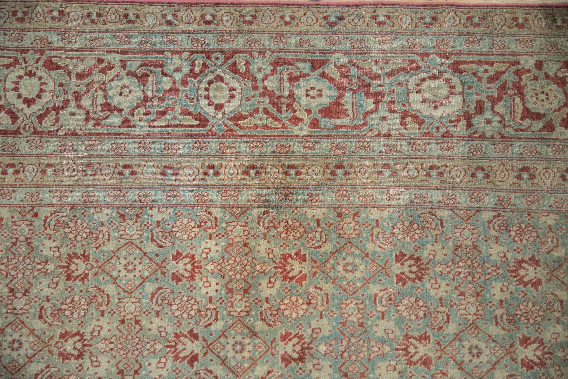 :: Allover covered field in a Herati design motif wrapped by a reciprocating Samovar and vine main border. Great abrashes across. Hard to find scale, size, and proportions. Colors and shades include: Dusty sky blue, slate blue, powder blue, madder root red, dusty rust, and more. Condition notes: Even wear across to knot heads. Most of the original side cord selvages are intact or restored. Fully secured sides and ends. Recently professionally cleaned ready for in-home use! Many years of enjoyment to come with this hand knotted Persian Tabriz carpet made in Persia circa 1930's vintage. Size measures 6'2" x 9'11".