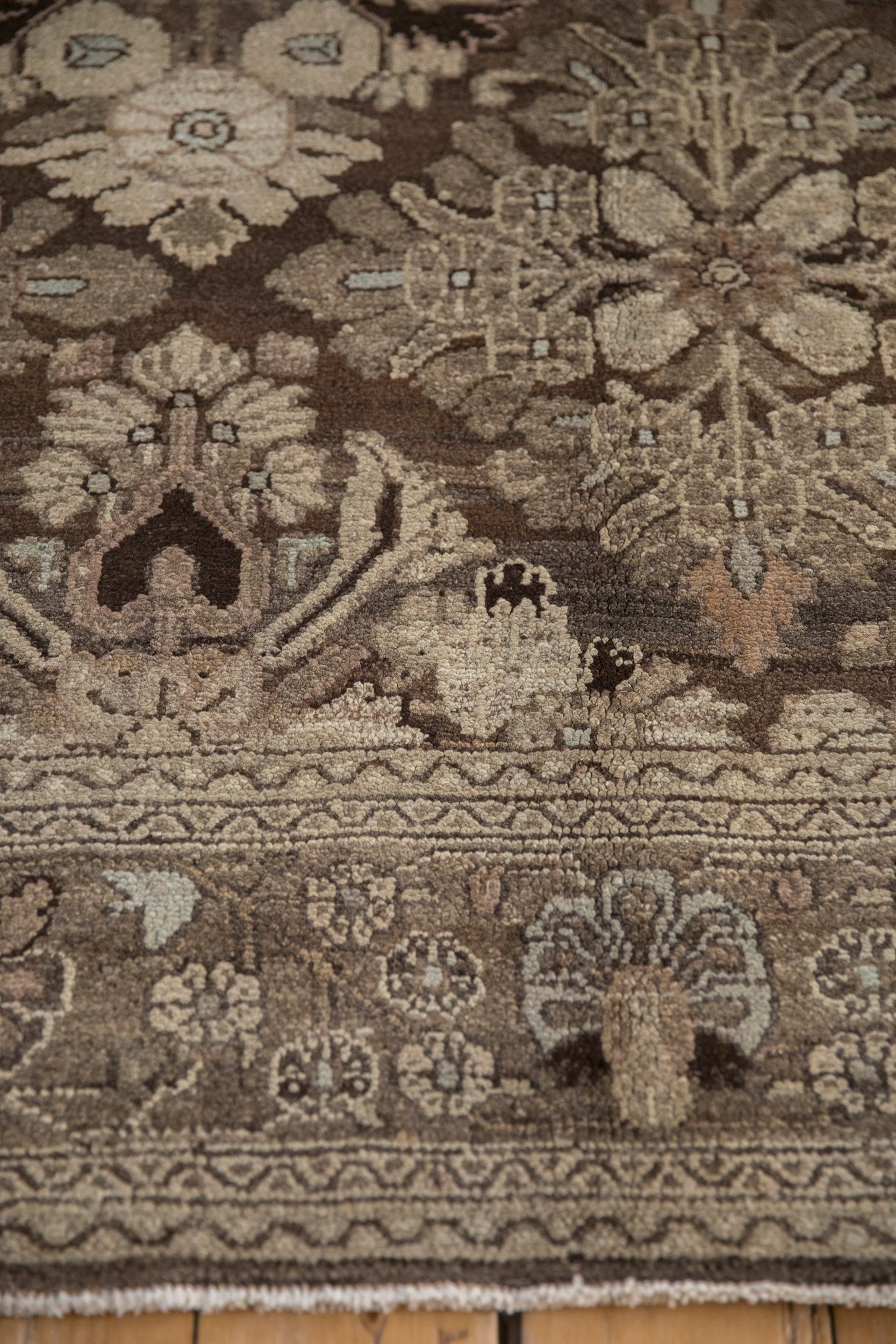 :: Floral bouquets arranged in a trellis lattice orientation atop an abrashes ground. Colors and shades include: Chocolate brown, platinum, ivory, oxidized silver, dusty powder blue, silver, olive green, and more. Condition notes: Even wear across to knot heads. Most of the original side cord selvages are intact or restored. Fully secured sides and ends. Recently professionally cleaned ready for in-home use! Many years of enjoyment to come with this hand knotted Persian Bibikabad carpet made in Persia circa 1950's vintage. Size measures 7'2" x 10'3".