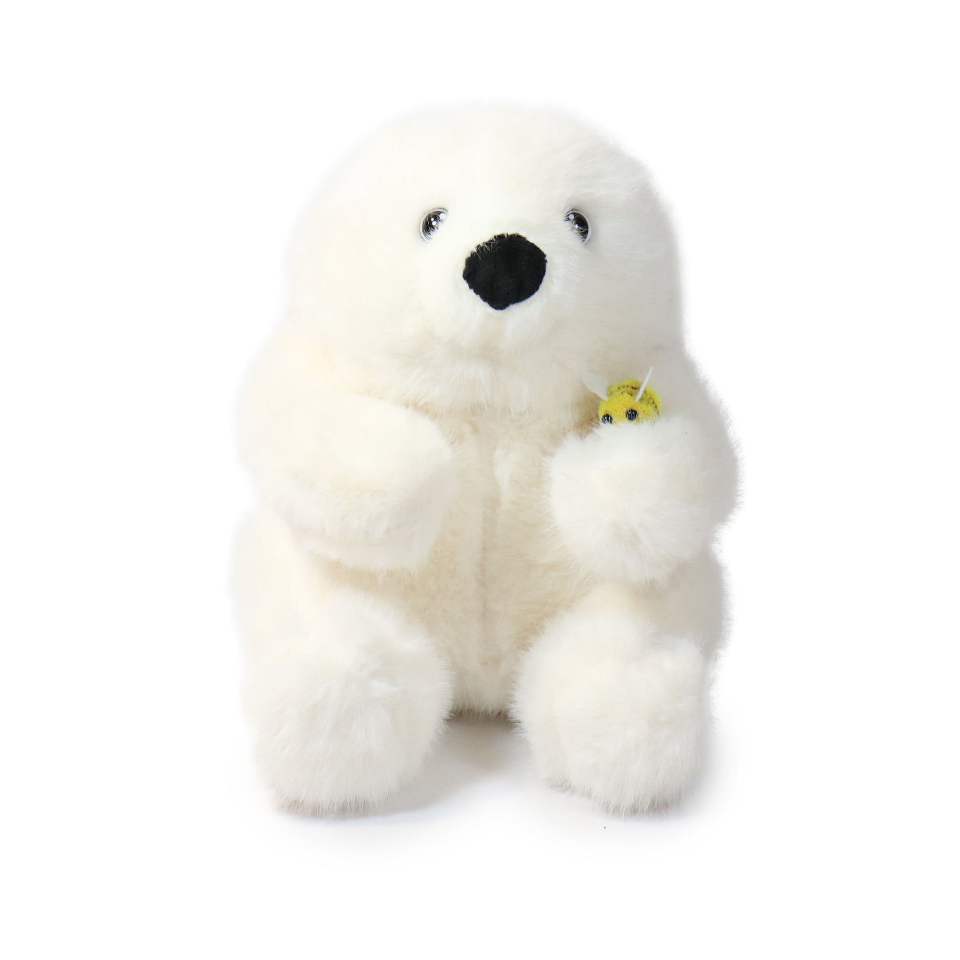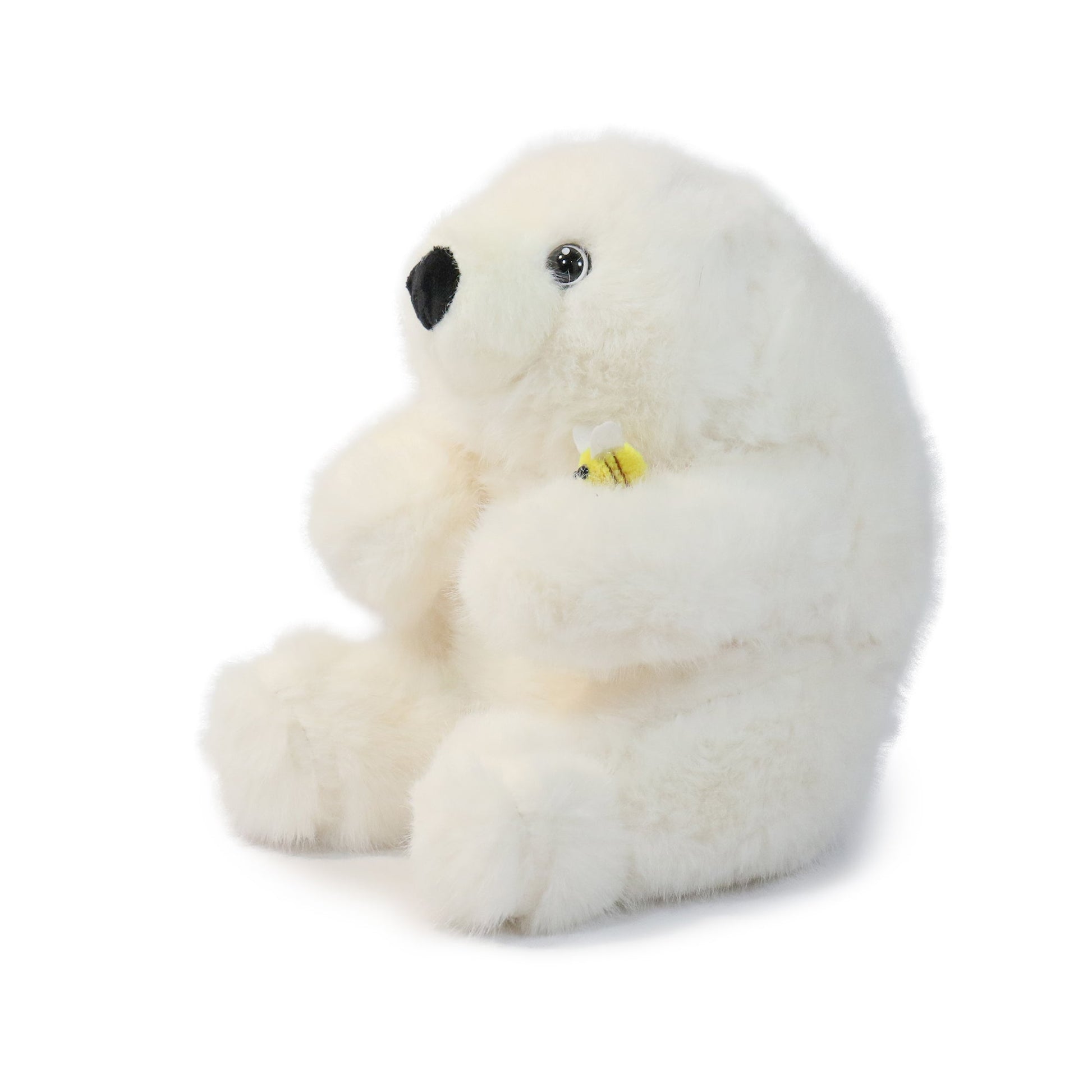 Buzzy Bear is a soft, cuddly polar bear who holds a tiny bee in his paw. Though he once lived in chilly, snowy places, his passion for caring for bees led him to warmer lands where he tends to his buzzing friends with gentle hands.