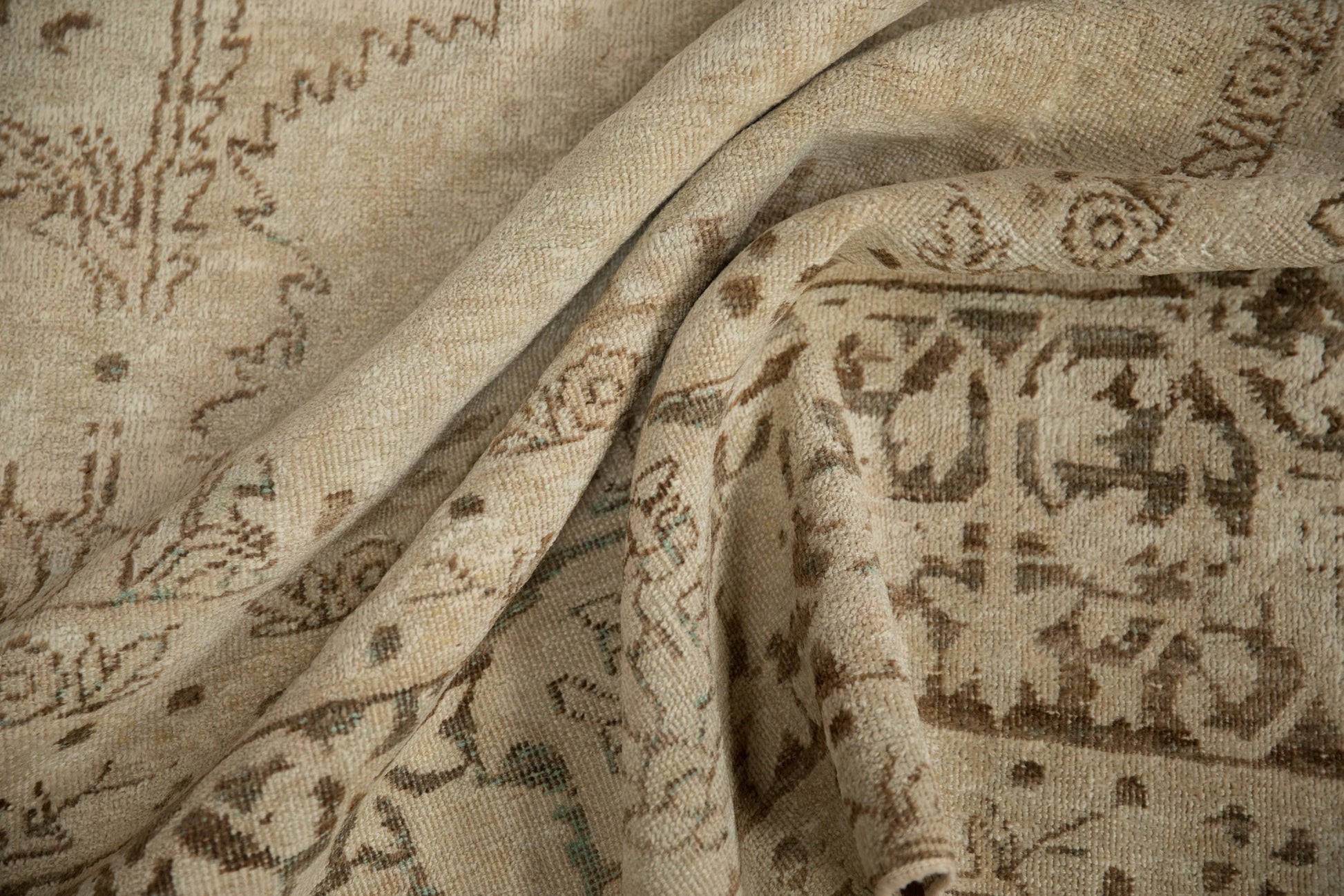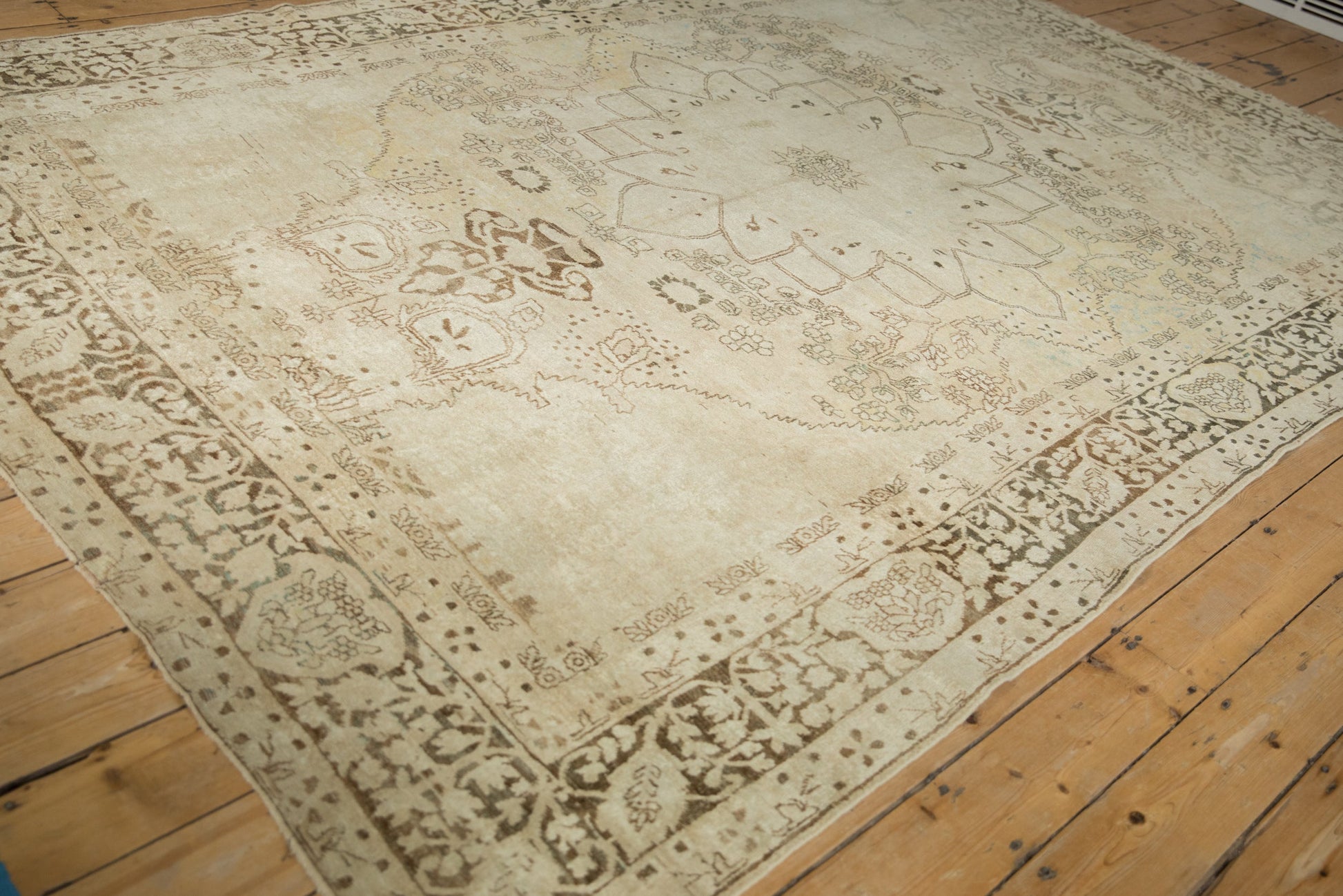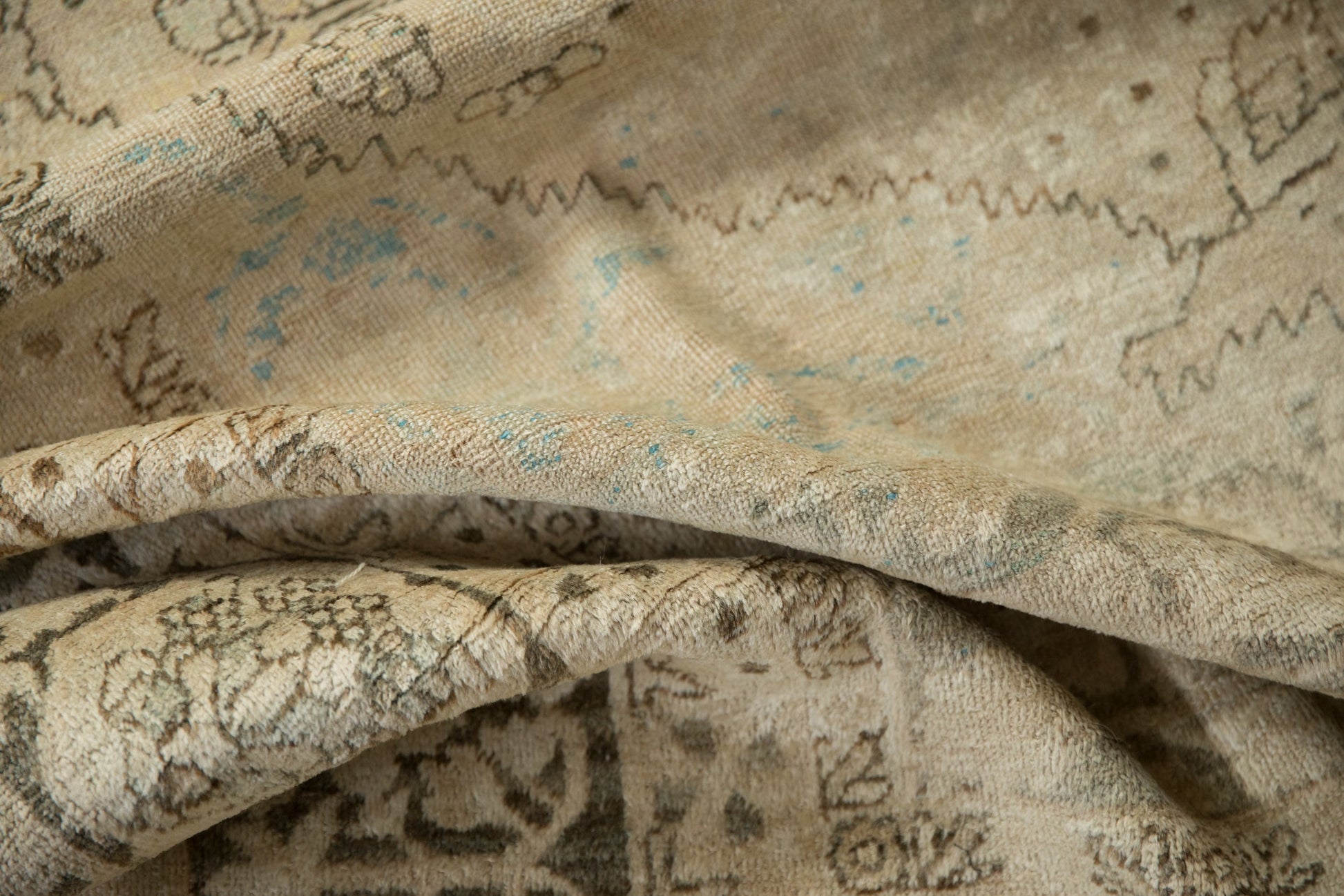 :: Overlapping starburst center medallions with minor interior floral top view adorned at either end by trefoil shaped finials within a covered field of sprawling vines and detailed blossoms. Corner spandrel overlays loosely reciprocate the contour of the main features. Fantastic contrast and tone-on-tone throughout with soft wool pile. Colors and shades include: Antique ivory, dark chocolate brown, coffee brown, oxidized silver, powder blue, and more. Condition notes: Even wear across to knot heads with faint foundation showing through. Most of the original side cord selvages are intact or restored. Tatter to sides. Three minor holes the size of a pencil eraser which will be repaired prior to dispatch. Localized areas of restoration in varying degrees of expertise, including one small patch to the outer minor border. Recently professionally cleaned ready for in-home use! Many years of enjoyment to come with this hand knotted Persian Kerman carpet made in Persia circa 1920's vintage. Size measures 7'10" x 10'11".
