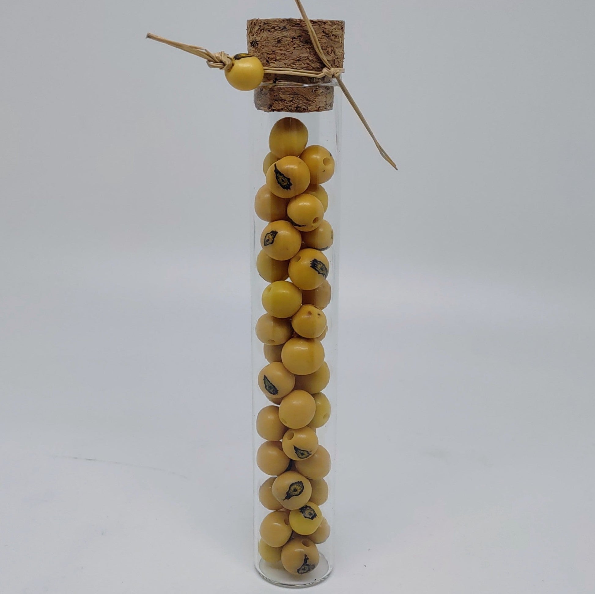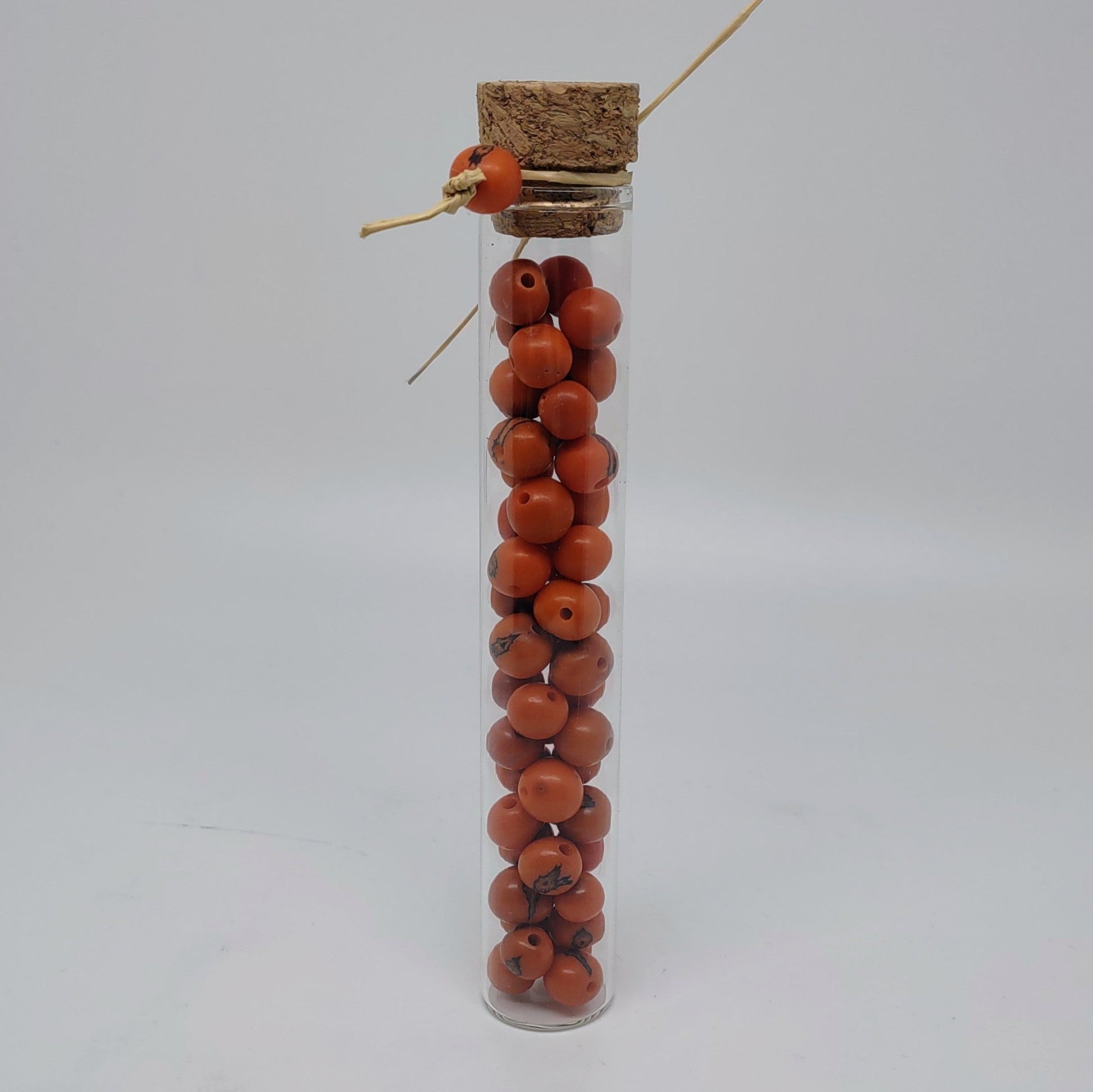 Beads are approximately 1/4" with holes for crafting and jewelry projects. Each test tube contains about enough beads to make a necklace or several bracelets, depending on the designs.