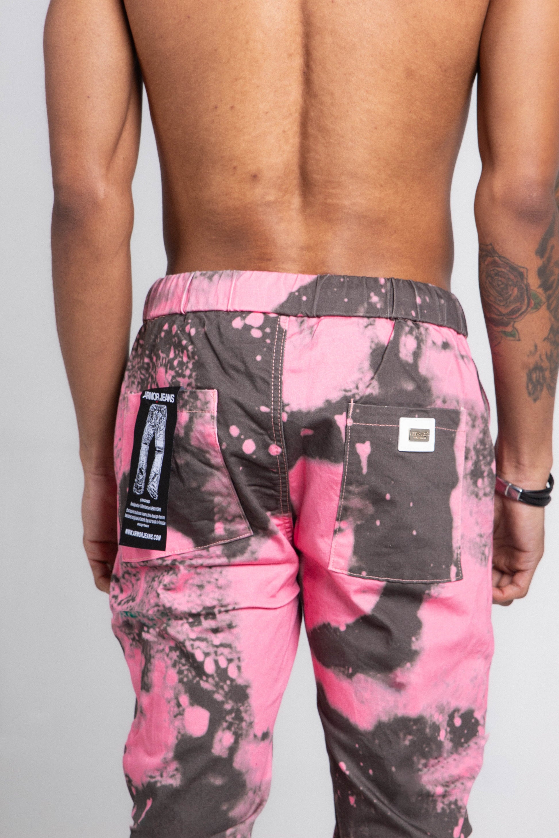 Straight-leg mid-rise jeans with color dye detail on the leg, featuring a five-pocket design, elastic band fastening and made of cotton.