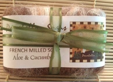 Go Green! Your skin will thank you when it gets washed in the loving lather of aloe and cucumber. Think about how tired eyes get relief from cucumber. Think about how burns and rashes are soothed by a caring aloe plant....and then you're close to the feeling you can get from bathing with our soothing Aloe & Cucumber Felted Soap.