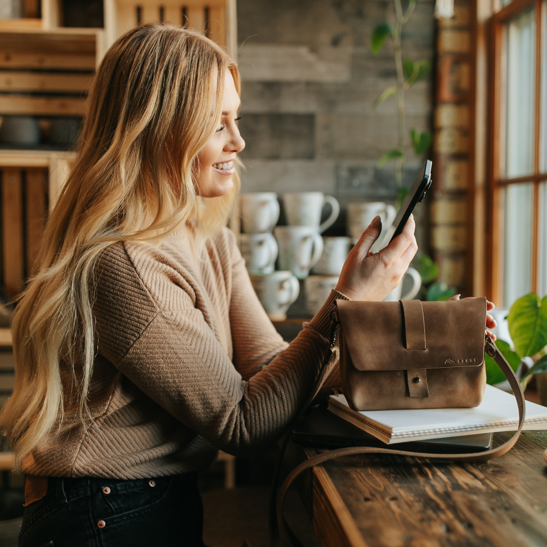 This minimal, full grain leather cross body bag is perfect for the essentials. Outfitted with a fully adjustable cross body strap, this bag will easily accommodate a minimalist wallet, phone, sunglasses and a few other small items. Take what you need without the bother of a big bag on your next outing. The strap is also removable to convert the purse into a small clutch.