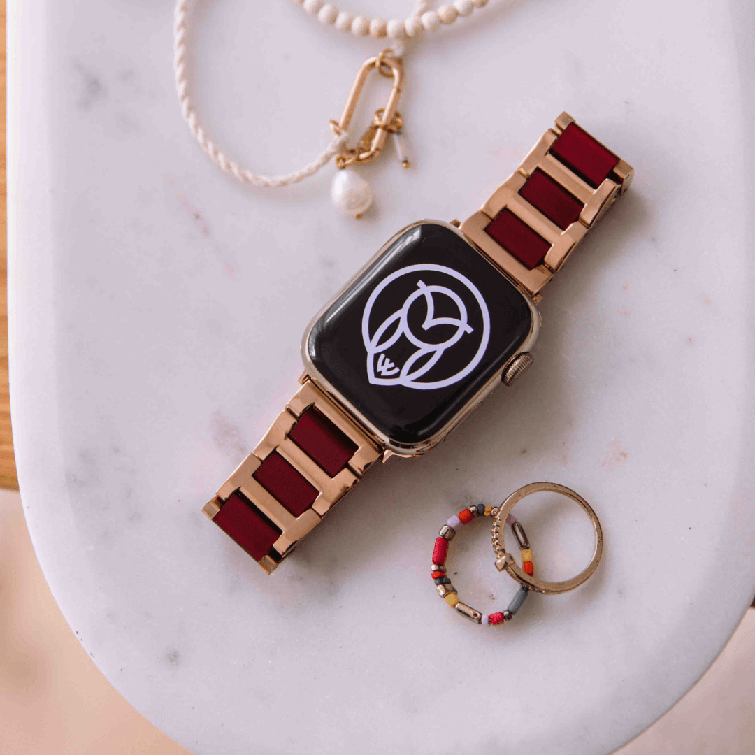 Elevate your Apple Watch with the Aura Metal Band, a sophisticated stainless steel accessory. Firstly, this durable Apple Watch band, available in gold or black, skillfully merges durable ceramic links for an elegant aesthetic. Moreover, its adjustable design ensures a snug fit, offering both luxury and comfort.
