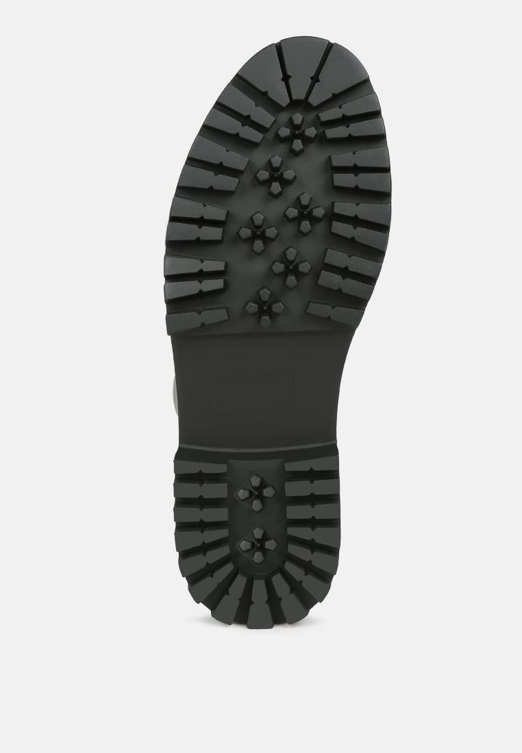 The heeled boots have a rustic effect of a retro aesthetic which is charming yet edgy. The chunky boots have lug soles with platform heels which gives them a bold look. You can pair these with any casual outfit and the elasticated gussets make them a comfortable fit as well.