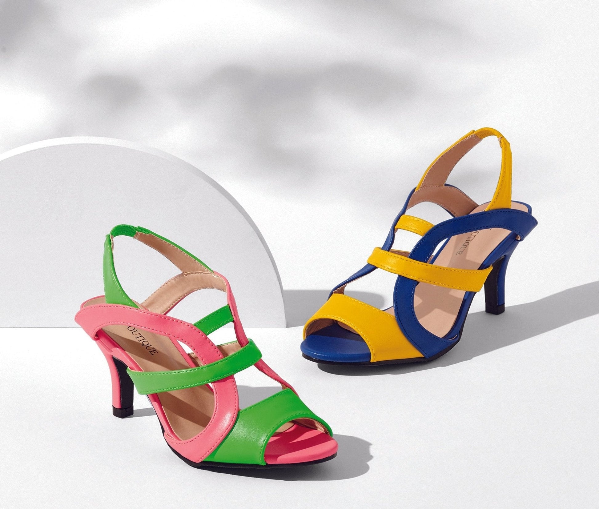 Stretch-inset back straps.3" heels.Cushioned insoles.Fabric and manmade materials.Imported.