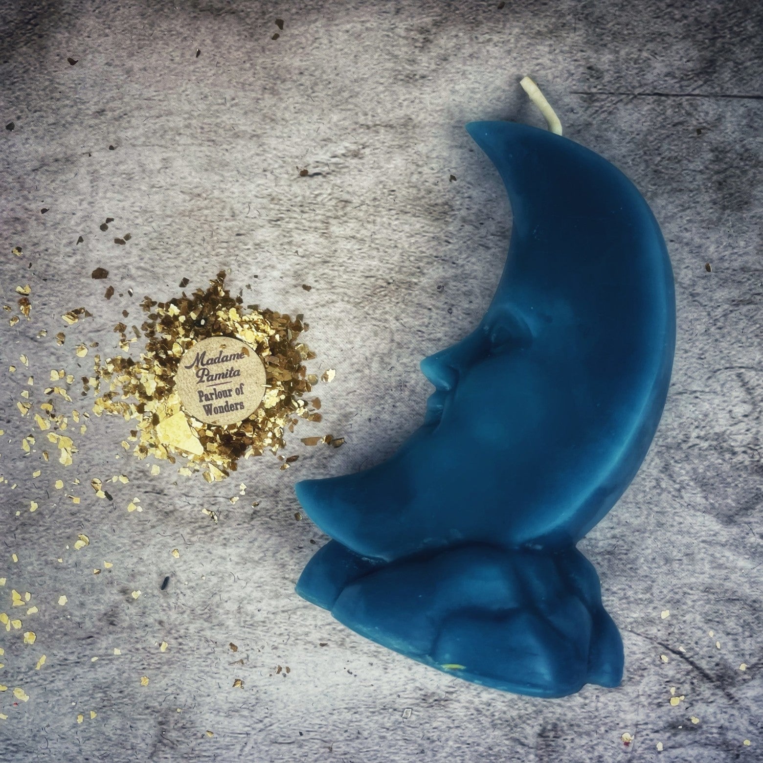 Our beautiful mama moon has been looking over the earth for millions of years, lovingly protecting us, guiding us, and helping us to make magic since the beginning of time. Use the power of this Beeswax Crescent Moon Spell Candle to empower your spells, especially those where you want to bring in ancient wisdom, intuition, glamour and the subtle power of attraction.