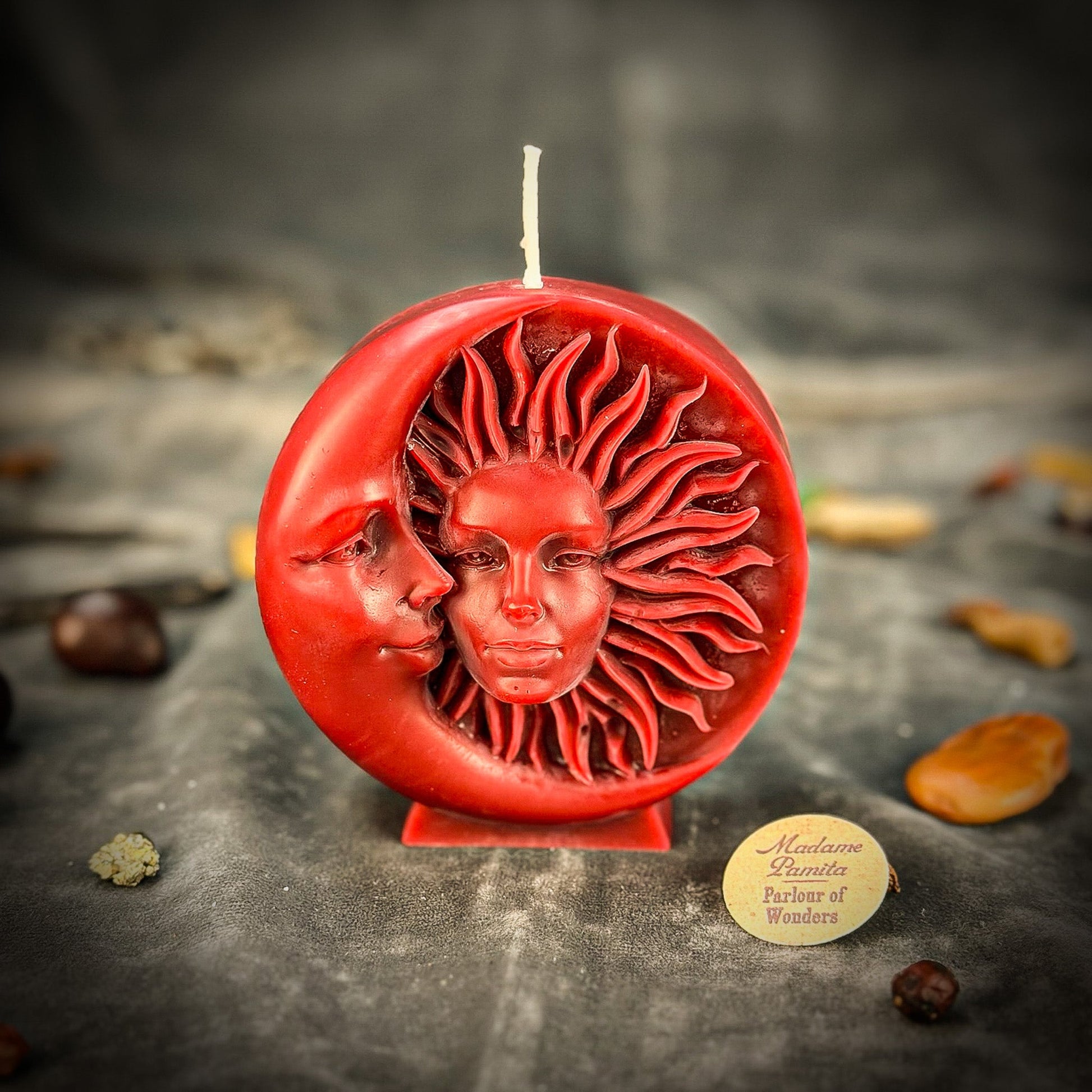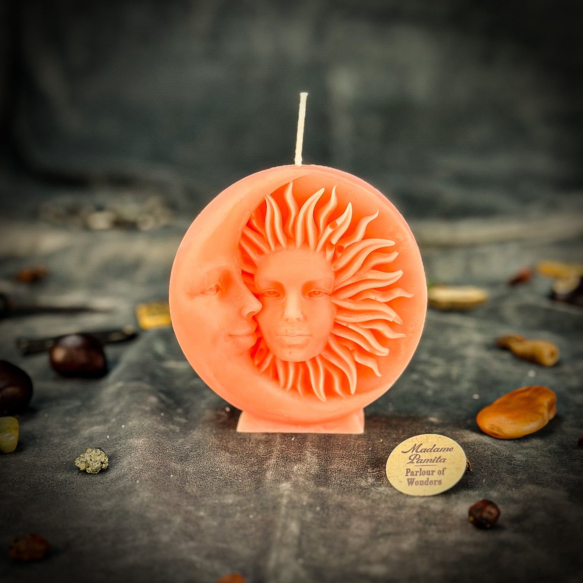 Harness the balanced energy of the cosmos with this Sun and Moon spell candle, blending the warmth and positivity of the sun with the calm, intuitive power of the moon. This candle is the perfect tool for spells that harness the energies of the Winter or Summer Solstice, the Spring or Fall Equinox, or the powerful energies of lunar or solar eclipses.