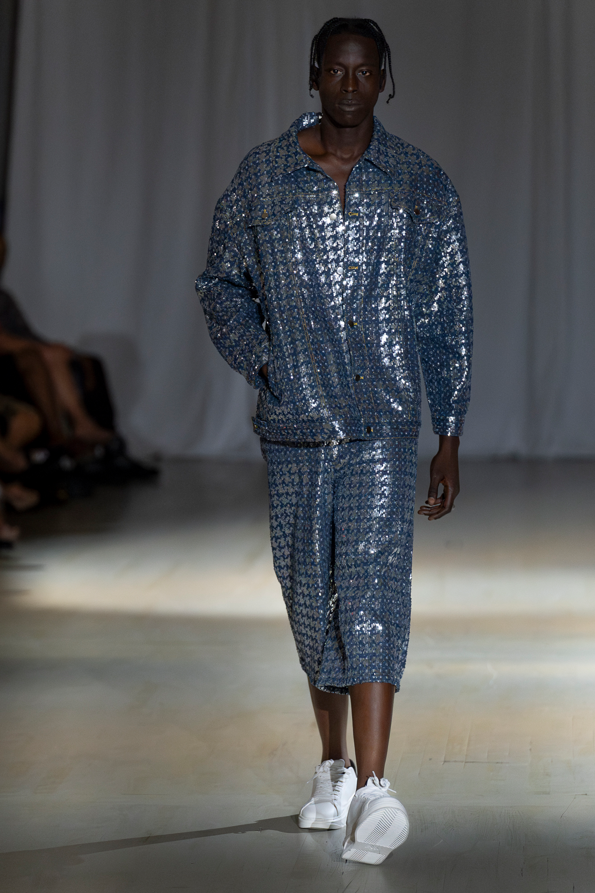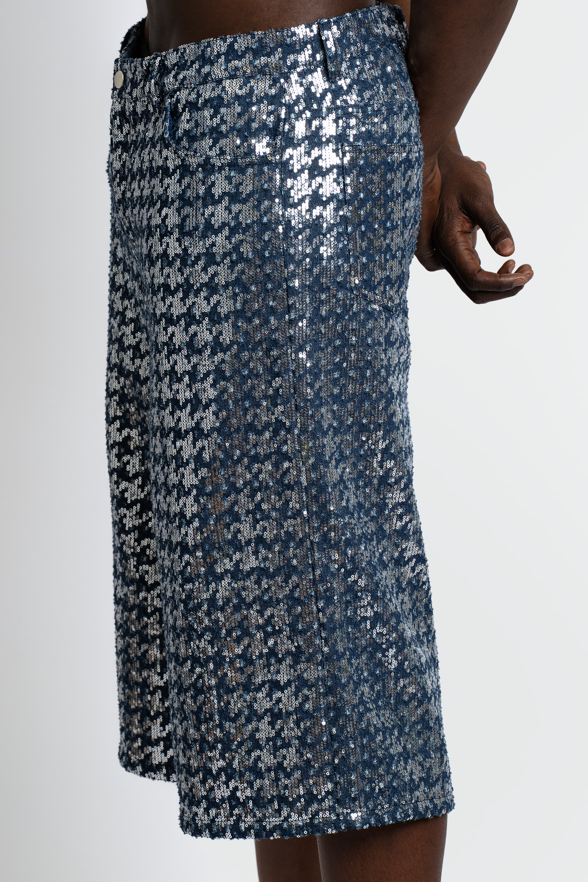 The Bleu Sequin Denim Shorts bring a bold twist to a classic staple, merging casual edge with high-fashion. Featuring a full sequin overlay, these statement shorts catch the light from every angle, creating electrifying texture and shine. With a structured fit, signature contrast stitching, and a confident attitude, they’re designed for those who refuse to blend in. Pair them with our matching sequin denim jacket for a head-to-toe moment or style them solo for an effortlessly bold look.
