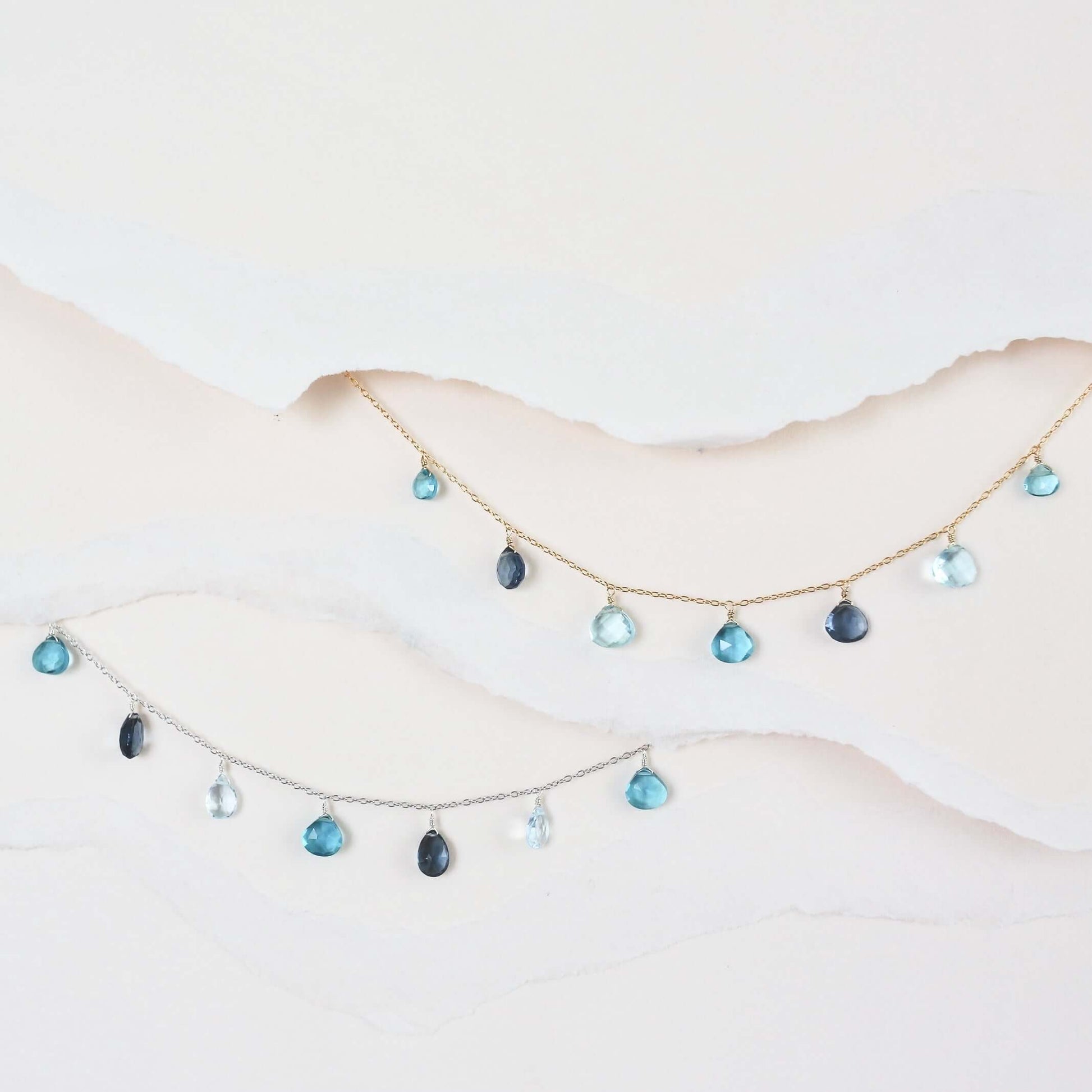 A lovely string of sparkling gems. Featuring Aquamarine, Iolite, and Aquamarine Blue Quartz gemstones, this 16-18" necklace comes with a 2" extender and a spring ring clasp. Handmade in our NYC studio with 14k gold plated over fine Italian silver, this gorgeous strand of gems stays tarnish-free. Plus, each gemstone's unique nature makes this necklace truly one-of-a-kind. Arrives effortlessly giftable in an exclusive gift box.