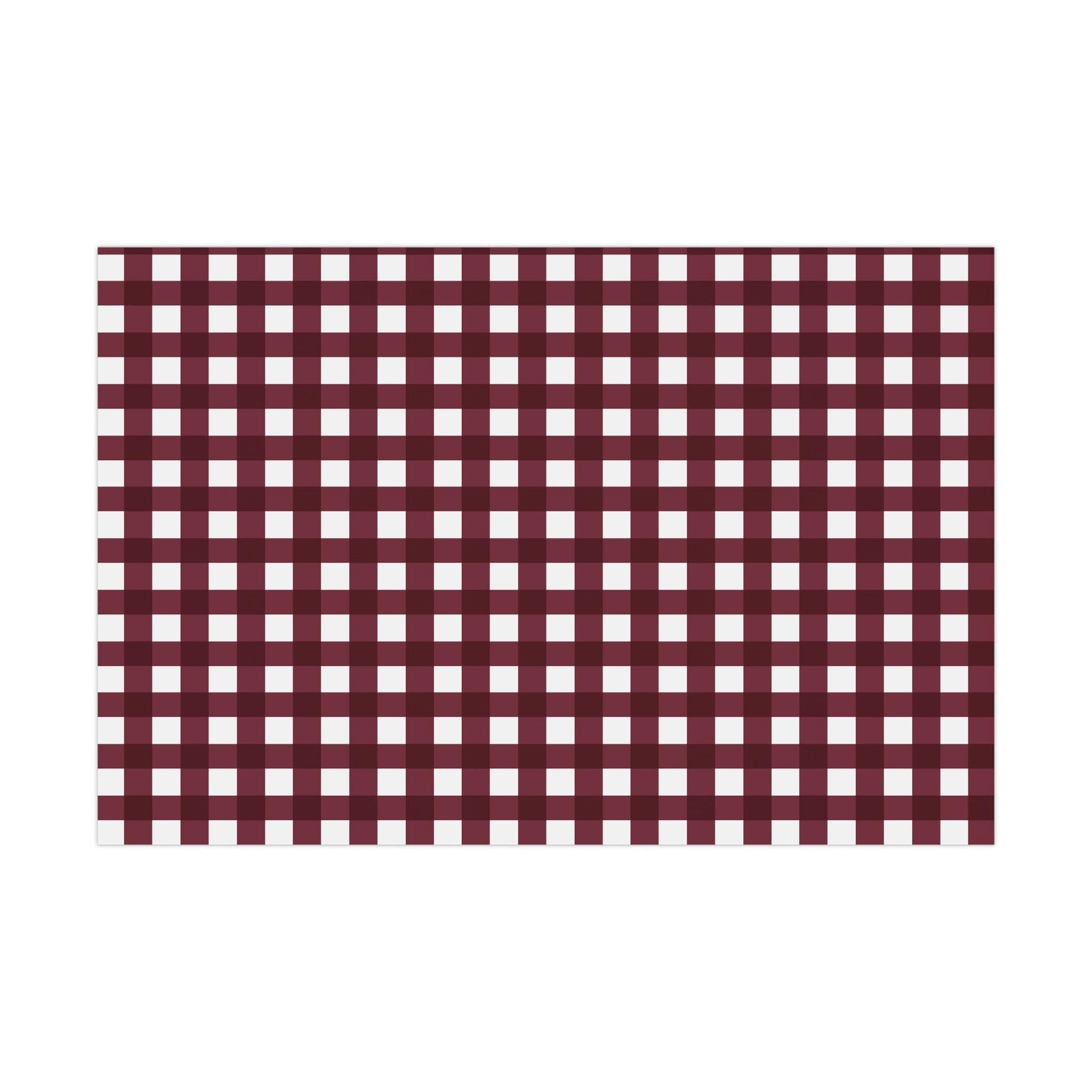 Elevate your gift-giving with this burgundy gingham pattern wrapping paper, perfect for the holidays. Add a festive touch to your presents and make them stand out under the tree. Ideal for those who love adding a special touch to their gift-giving during Christmas.