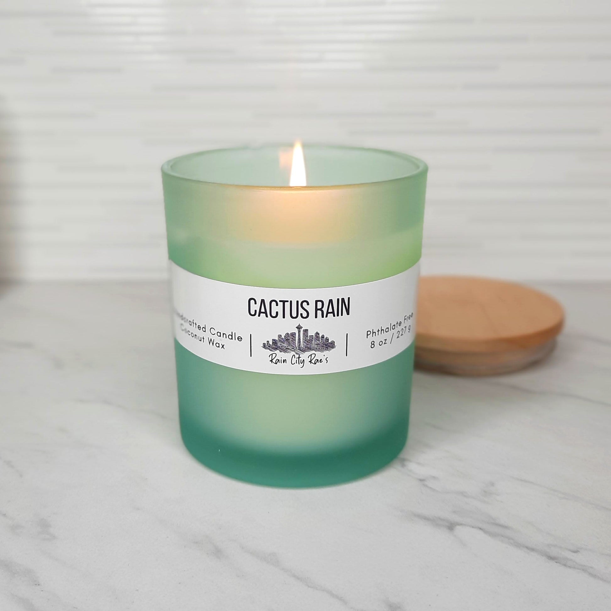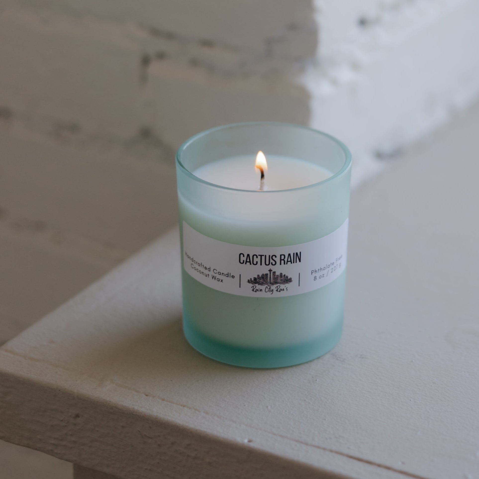 Cactus Rain 8 oz Frosted Candle | Teal Blue