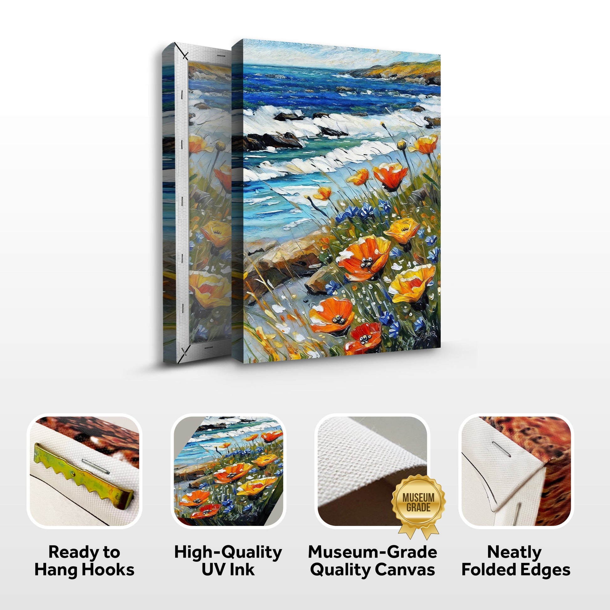 Enhance your home with the cheerful beauty of "Coastal Blooms", one of the artworks from his collections. This lively canvas captures the vibrant colors of coastal flowers against a stunning ocean backdrop. Perfect for adding a splash of color and a sense of serenity to any room, it brings the joyful essence of nature indoors. Ideal for living rooms, bedrooms, or any space needing a touch of coastal charm.