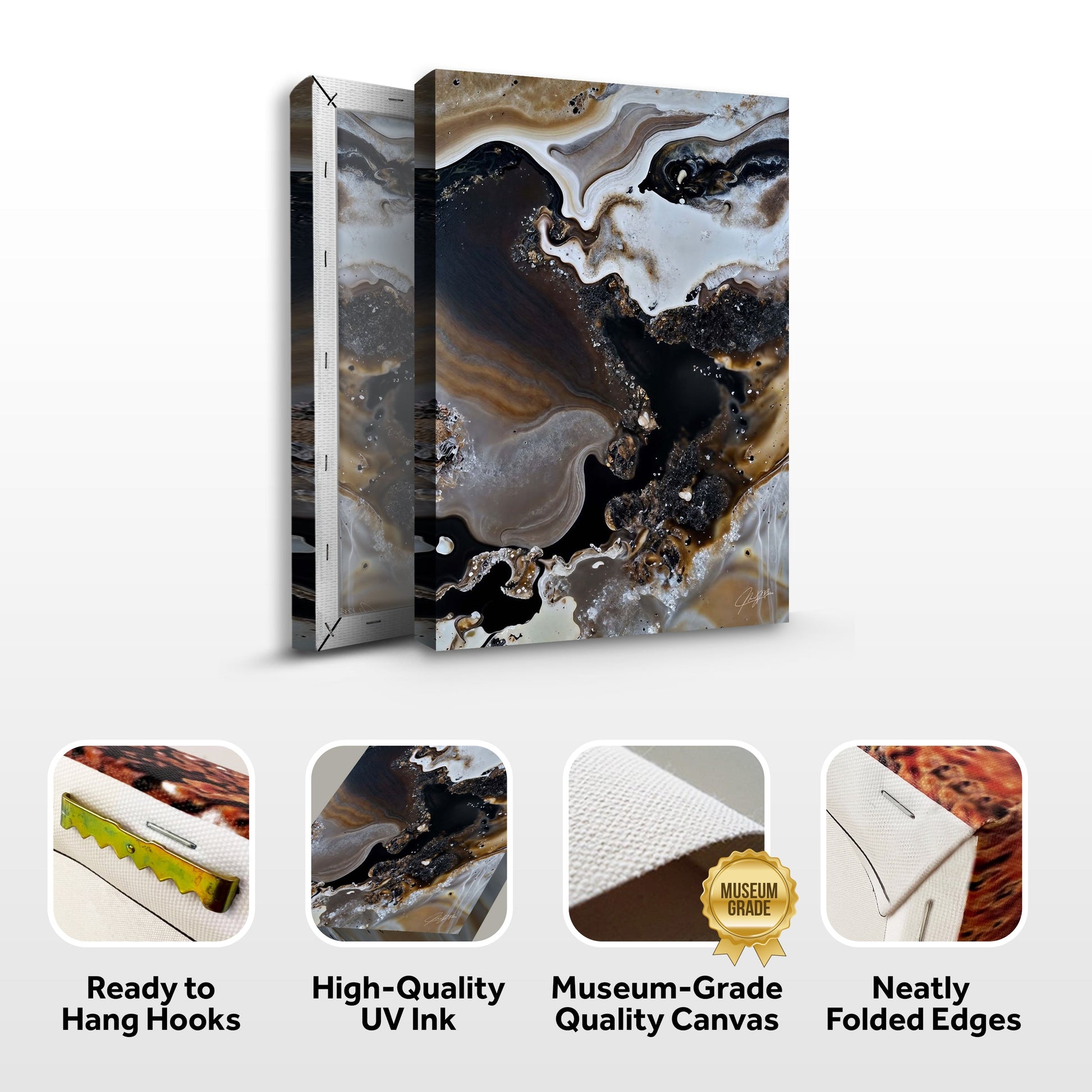 Enhance your home with the captivating beauty of "Geode Whispers III" from one of his famous art collections. This abstract canvas features swirling earthy tones and intricate patterns reminiscent of natural geodes, bringing a touch of sophistication and tranquility to any room. Perfect for creating a serene atmosphere, it adds depth and elegance to your decor. Ideal for living rooms, bedrooms, or any space in need of a refined focal point.
