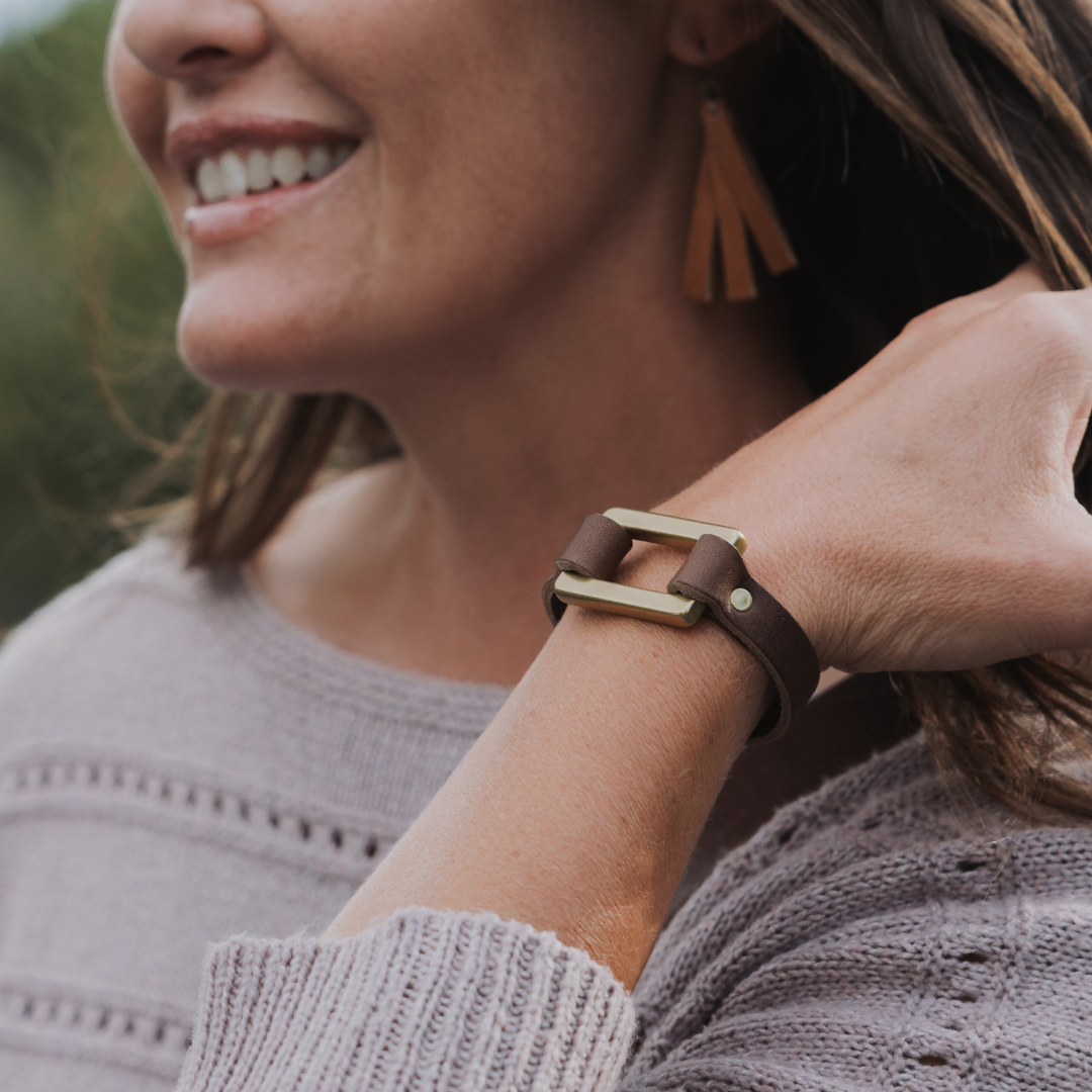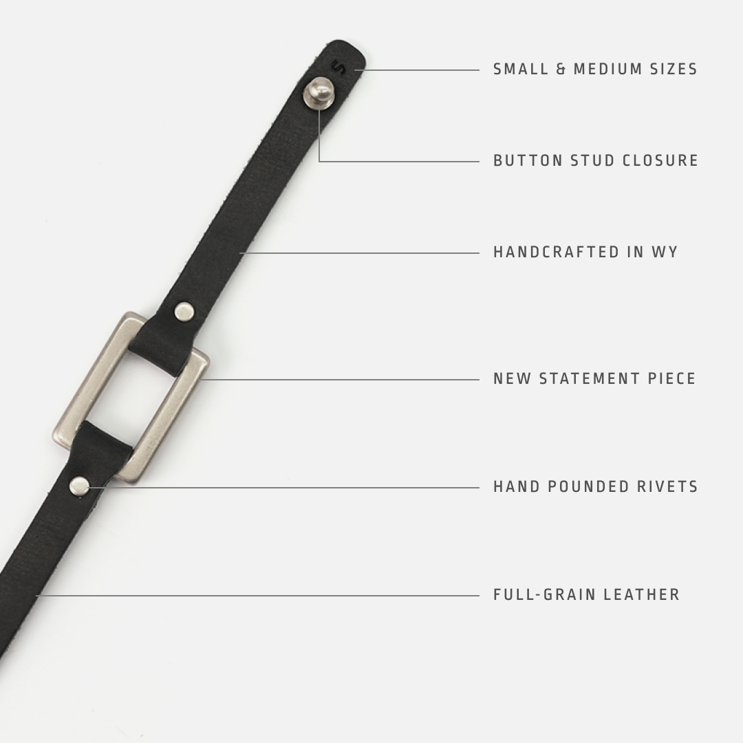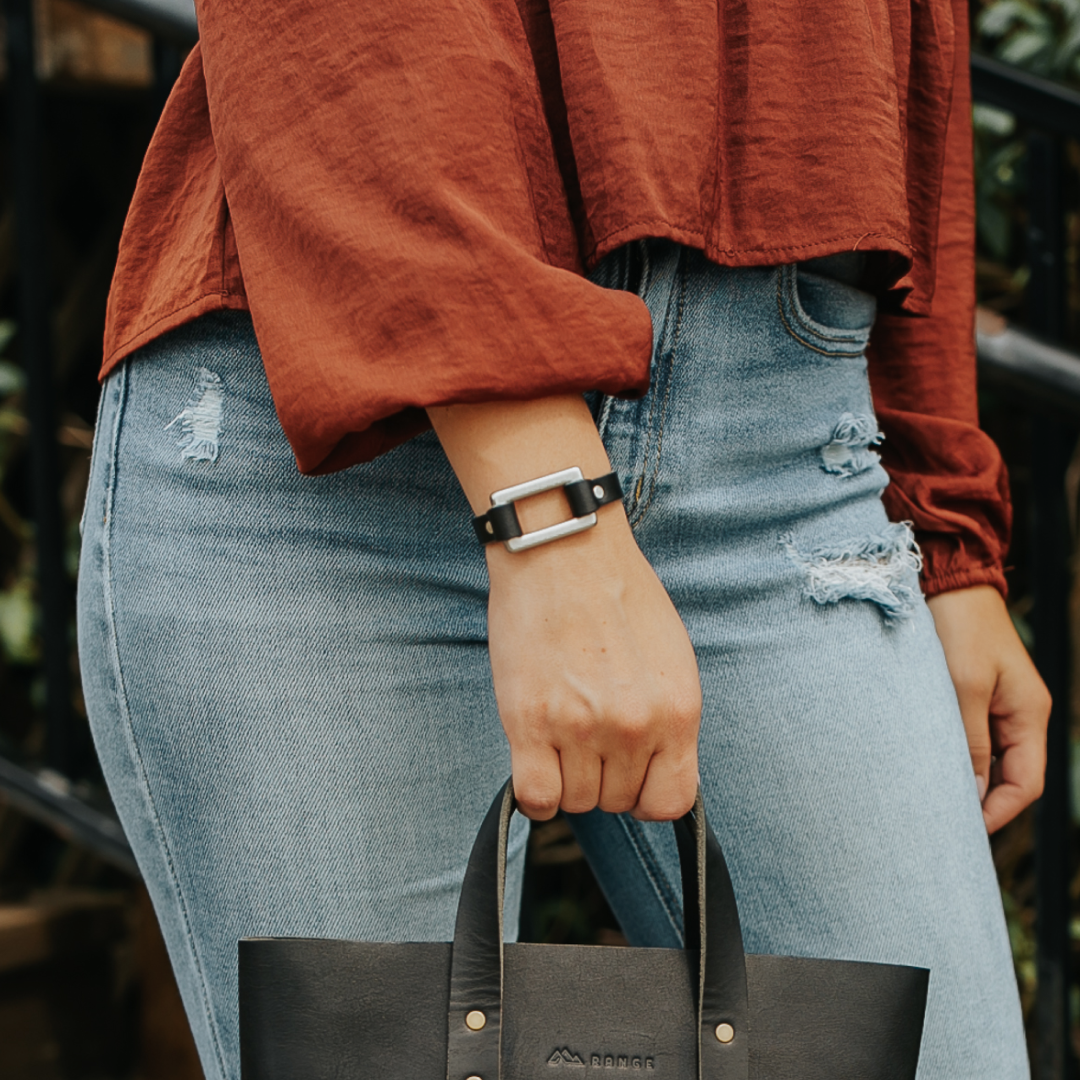 The Cascade Bracelet is a bold yet elegant statement piece, crafted from premium full-grain leather and featuring a striking large rectangular ring as its centerpiece. This unique design blends modern minimalism with timeless craftsmanship, making it perfect for any occasion. Two wrist sizes ensures a comfortable fit, while the distinctive rectangular ring adds a touch of sophistication. Whether dressing up or keeping it casual, the Cascade Bracelet is a versatile accessory that elevates any outfit.