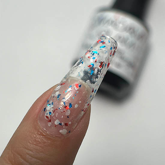 Top off your festive look with a no-wipe top coat infused with delicate flakes. This finishing touch adds a subtle shimmer and long-lasting protection to your manicure.