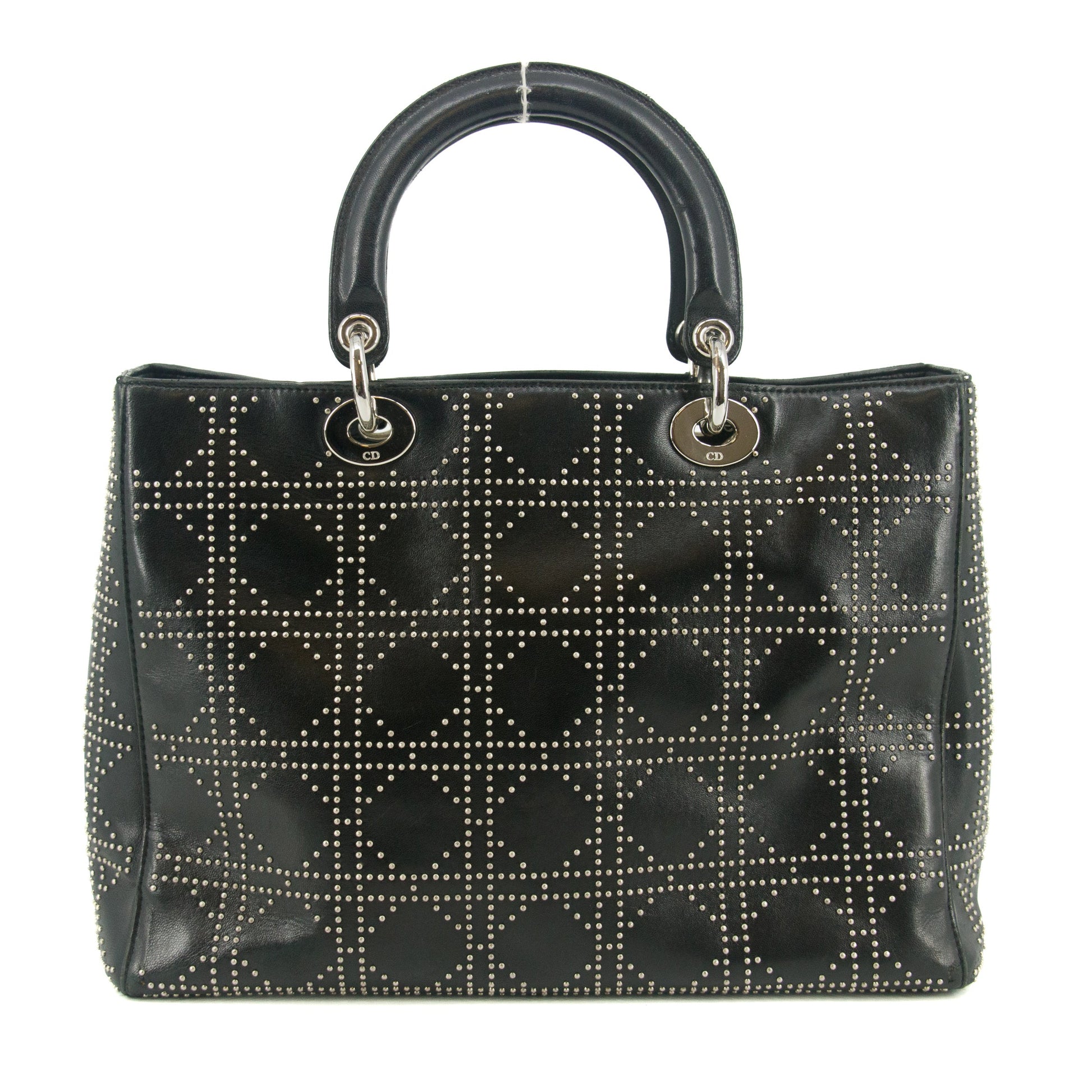- Christian Dior Leather Studded Black Lady Dior Tote Bag -SKU #8532