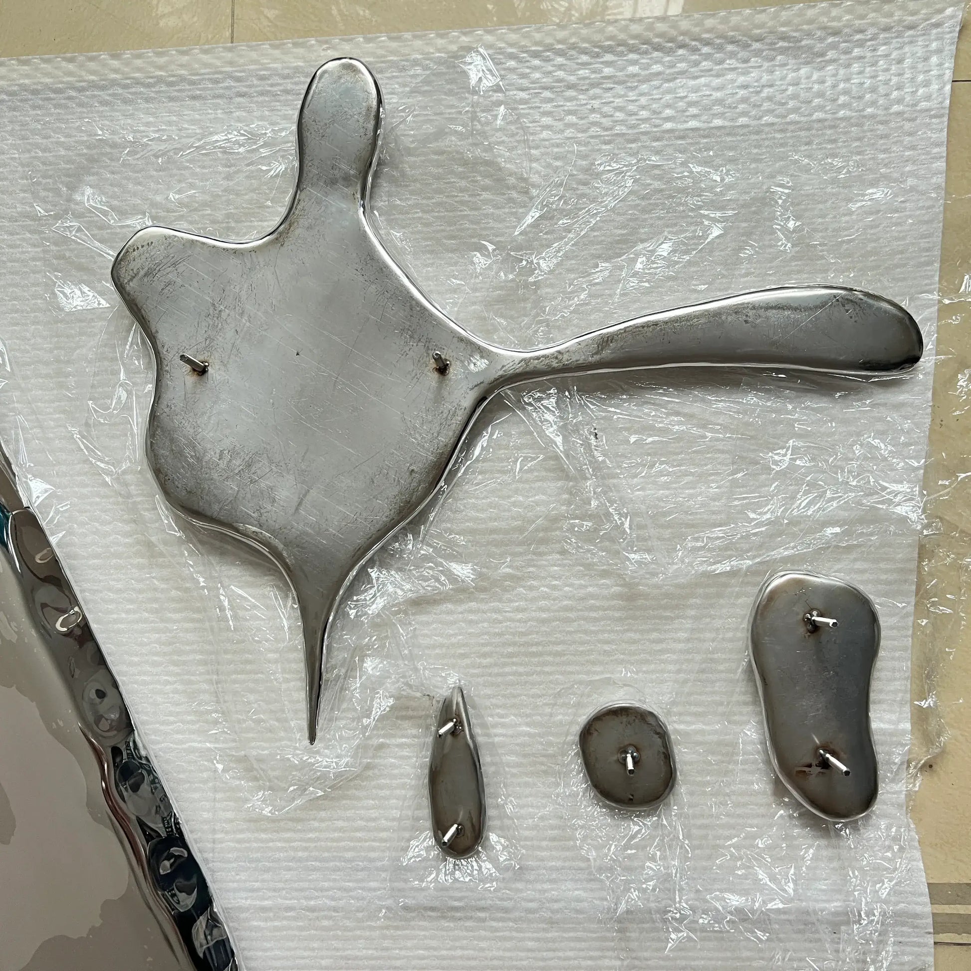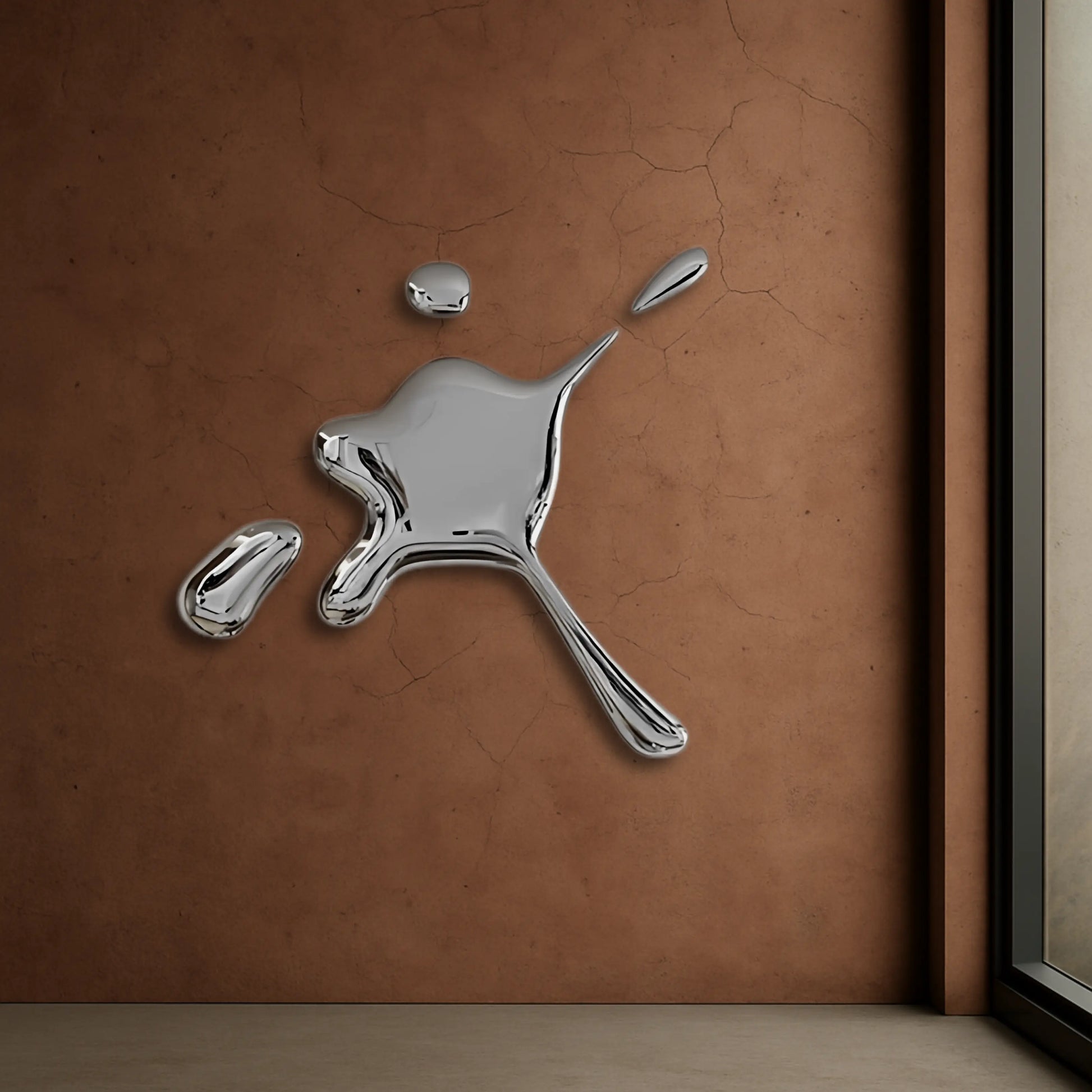 Chrome Splat is a striking wall sculpture crafted from high-polish stainless steel, designed to resemble the dynamic splash of liquid in mid-air. Its fluid, organic forms create a sense of motion and energy, while the mirror-like surface adds depth and reflection to any space. Each piece is individually shaped to enhance the natural, spontaneous feel of the design. A bold, modern statement for interiors that embrace artful minimalism.