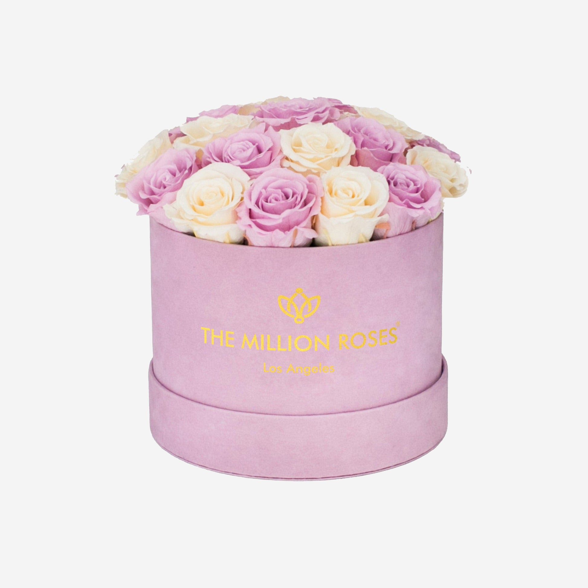 Classic Light Pink Suede Dome Box | White & Pink Roses