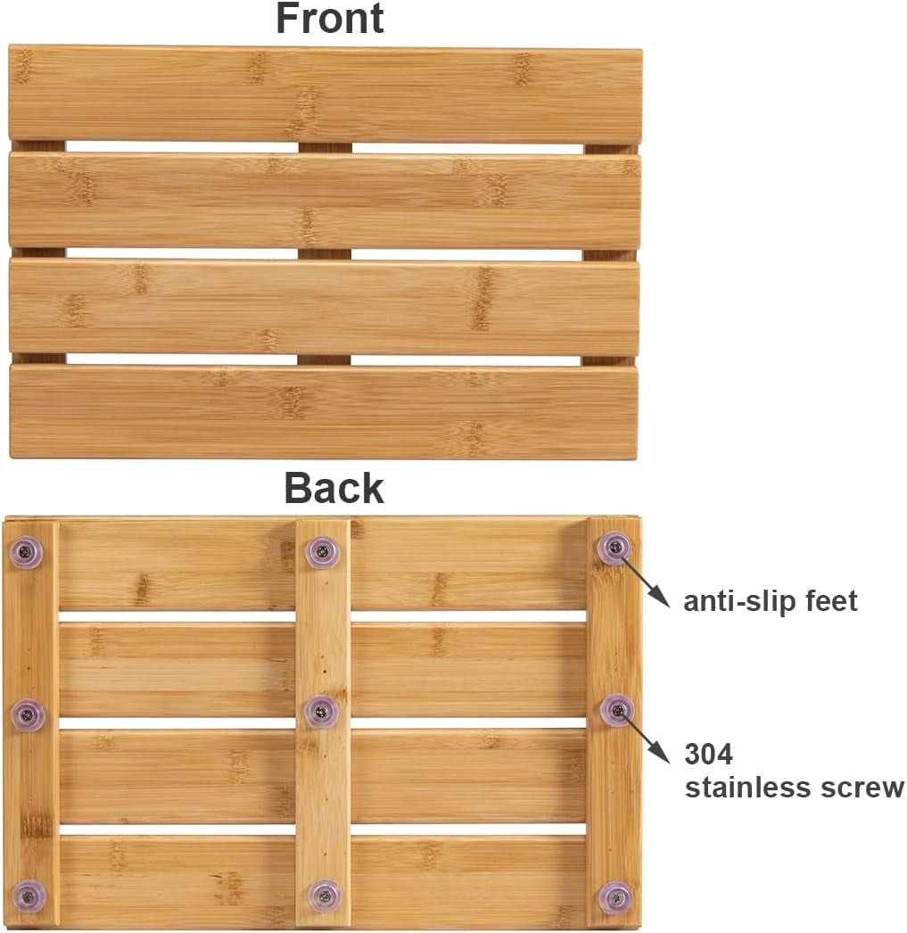 Sized at 15.8" x 10.2", this mini bamboo bath mat is perfect for small bathrooms, dorms, apartments, RVs, or tight showers. Its sleek, compact design offers a practical solution without sacrificing style or comfort.
