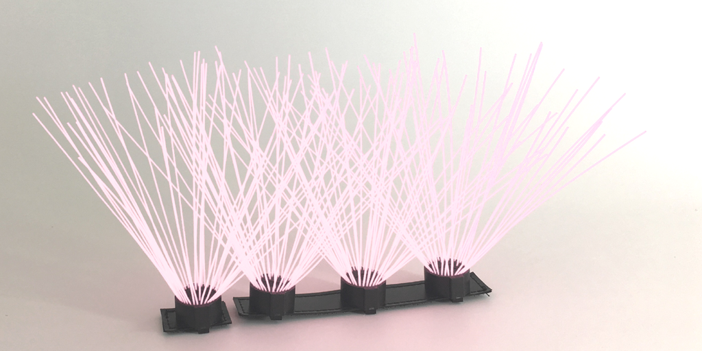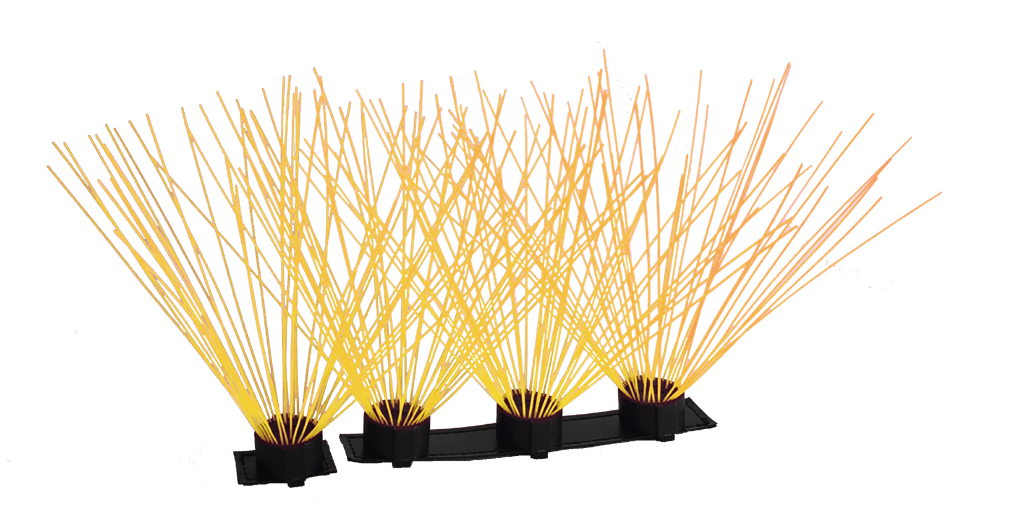 The CoyoteWhiskers (accessory, doesn't include the vest) are very lightweight and they attach to the top of the CoyoteVest or SpikeVest with Velcro. They're actually just flexible nylon bristles that are not dangerous at all – but a predator doesn’t know that. For all they know the bristles might be razor sharp and poison tipped – the opposite of an easy meal. *The CoyoteWhiskers are to be used specifically with CoyoteVest Pet Body Armor products.