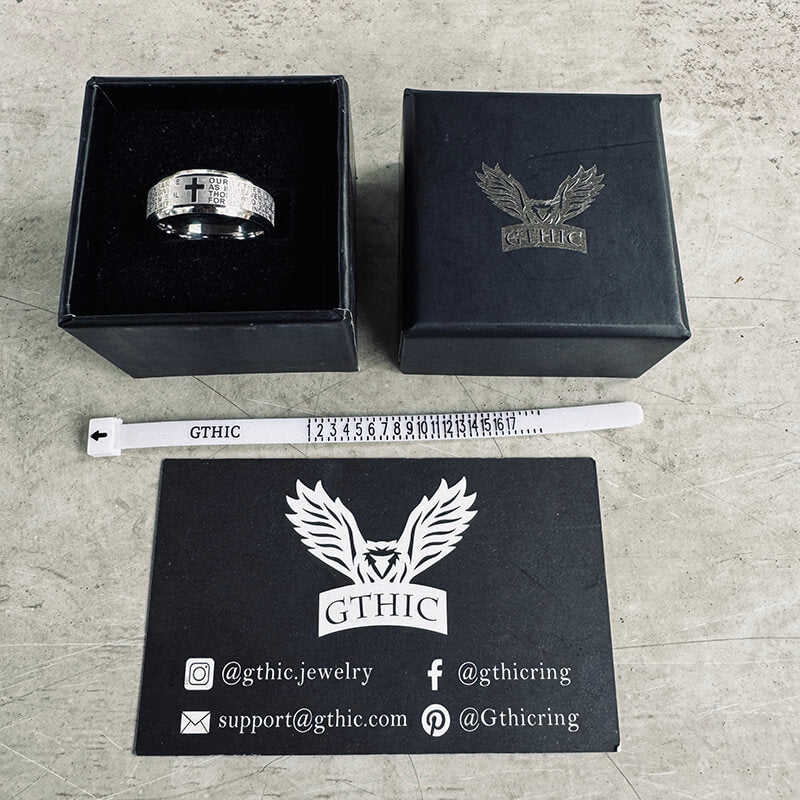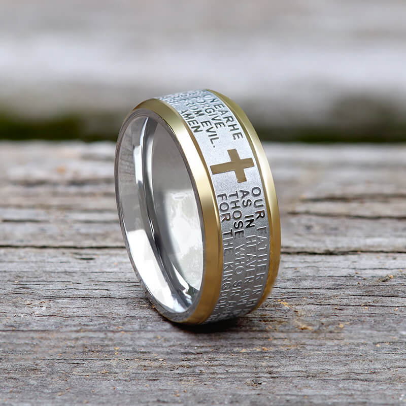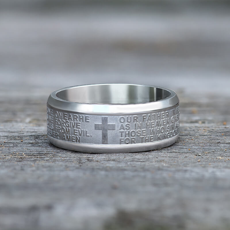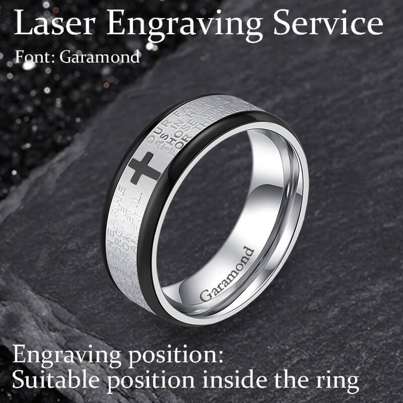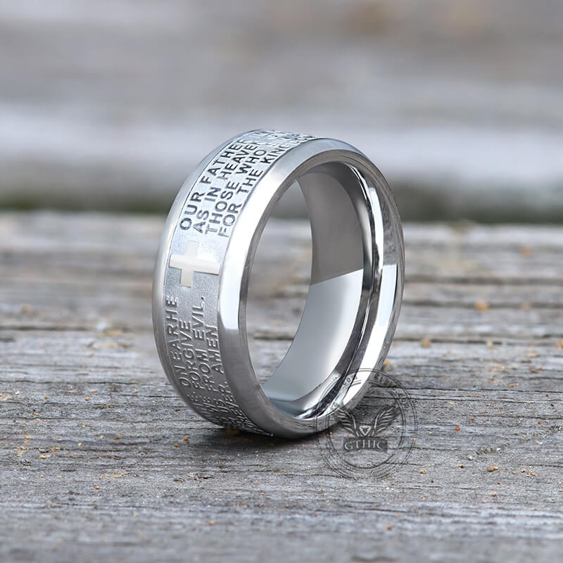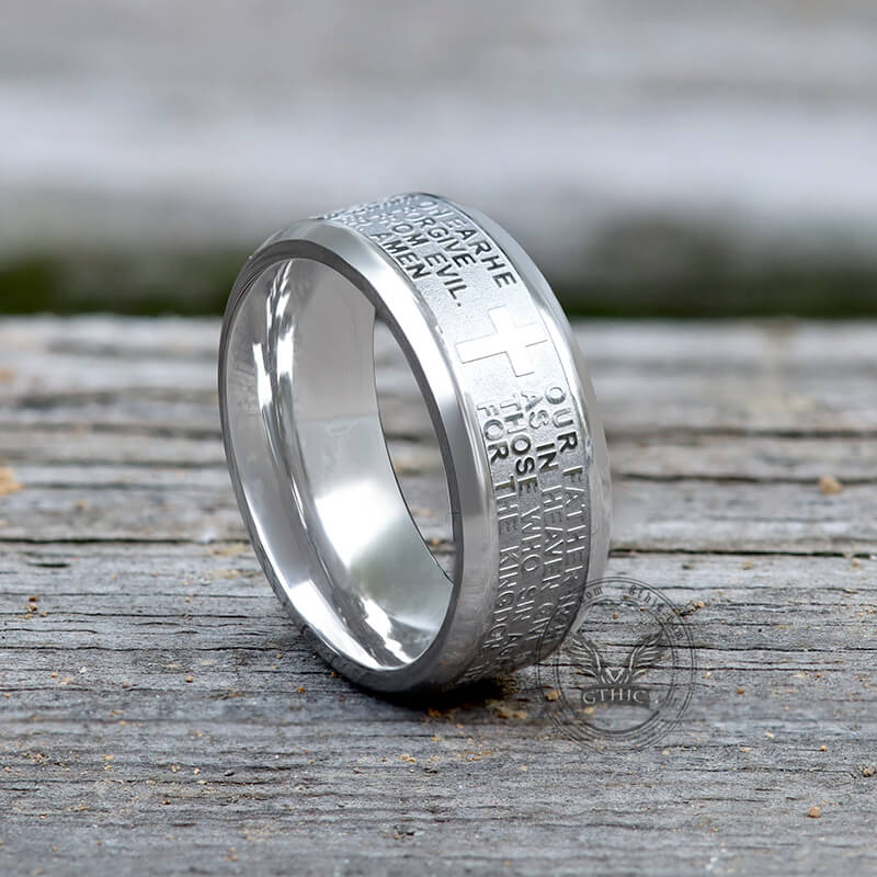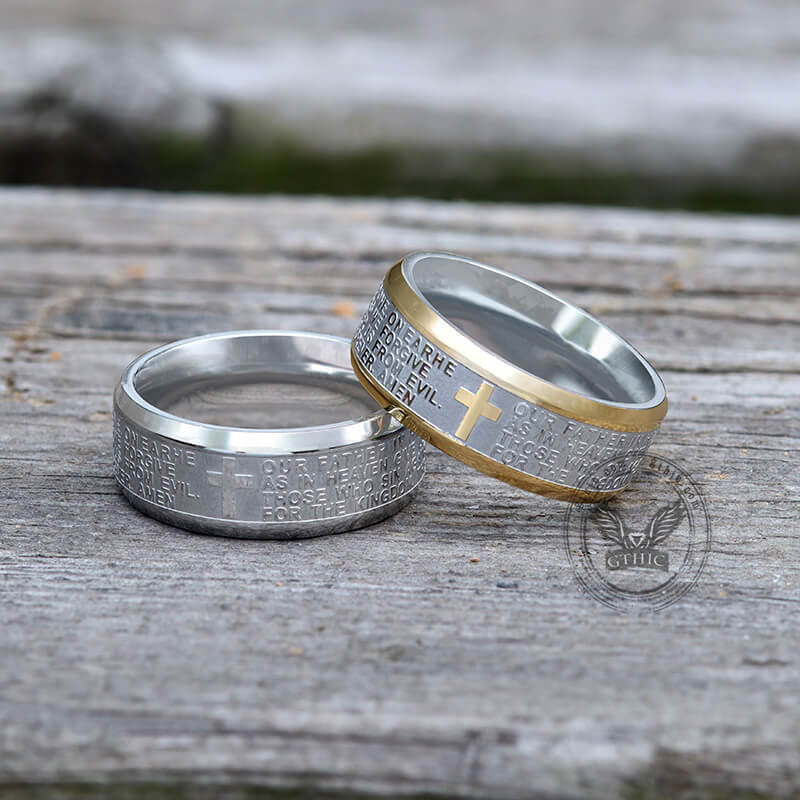 This Cross Prayer ring is perfect for expressing your faith. This ring is engraved with Christ's prayer words-Our Father, which is a central Christian prayer, a longer form within the Sermon on the Mount in the Gospel of Matthew, and a shorter form in the Gospel of Luke. Crafted from stainless steel, this meaningful ring is an elegant way to show your appreciation for God.