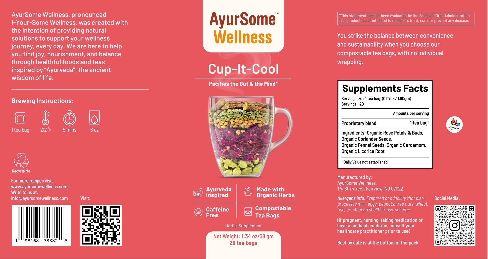 Cup-It-Cool Tea balances the Pitta dosha i.e. fire element.*