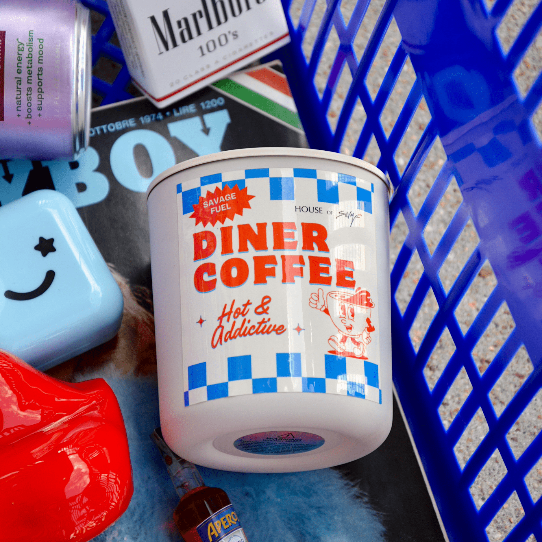 The scent of bottomless refills, lipstick-stained mugs, and questionable life choices at 2 a.m. Light it up and suddenly you’re in a diner booth plotting your next bad idea.