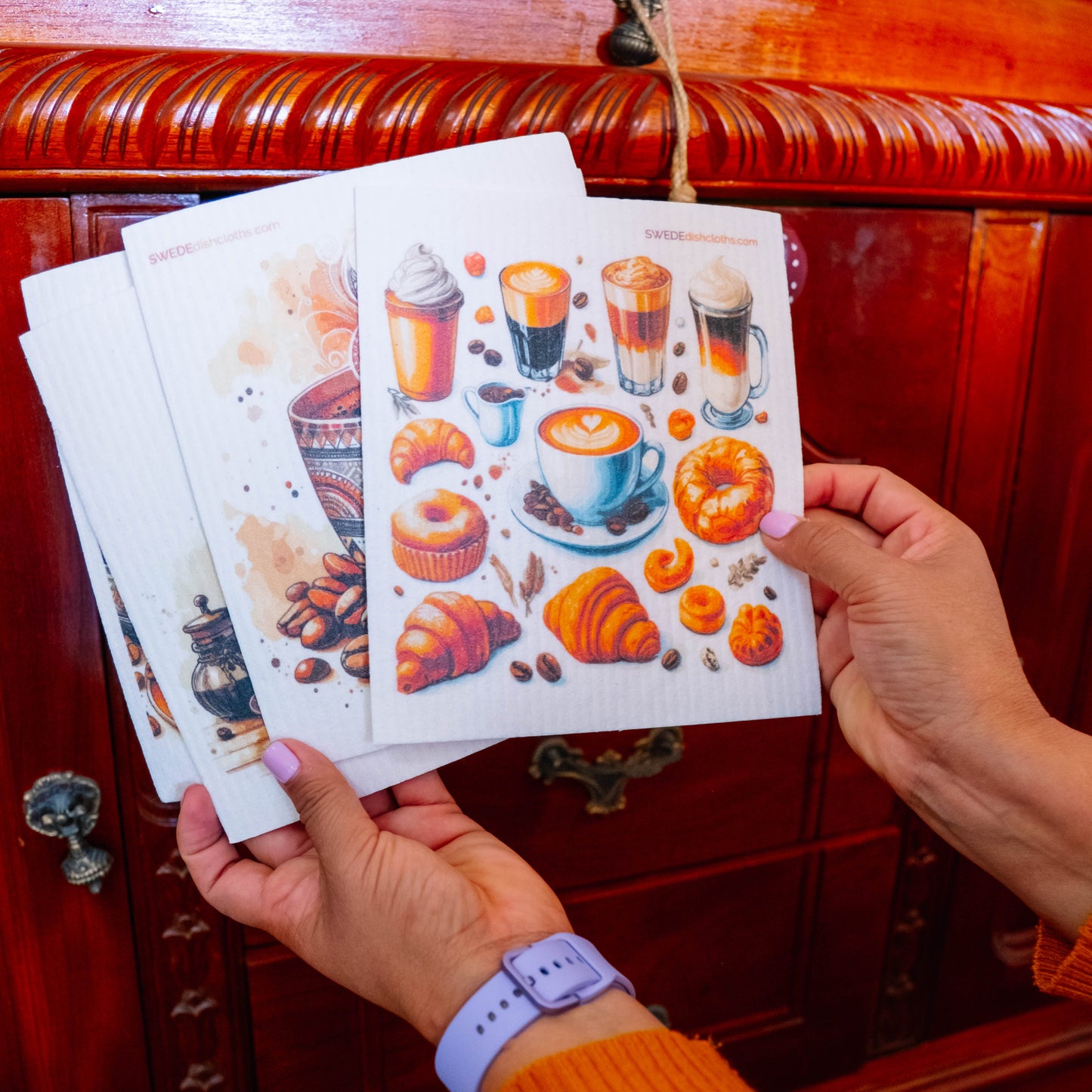 Eco-Friendly Swedish Dishcloths - Coffee and Sweets Set of 3 (Paper Towel Replacements)