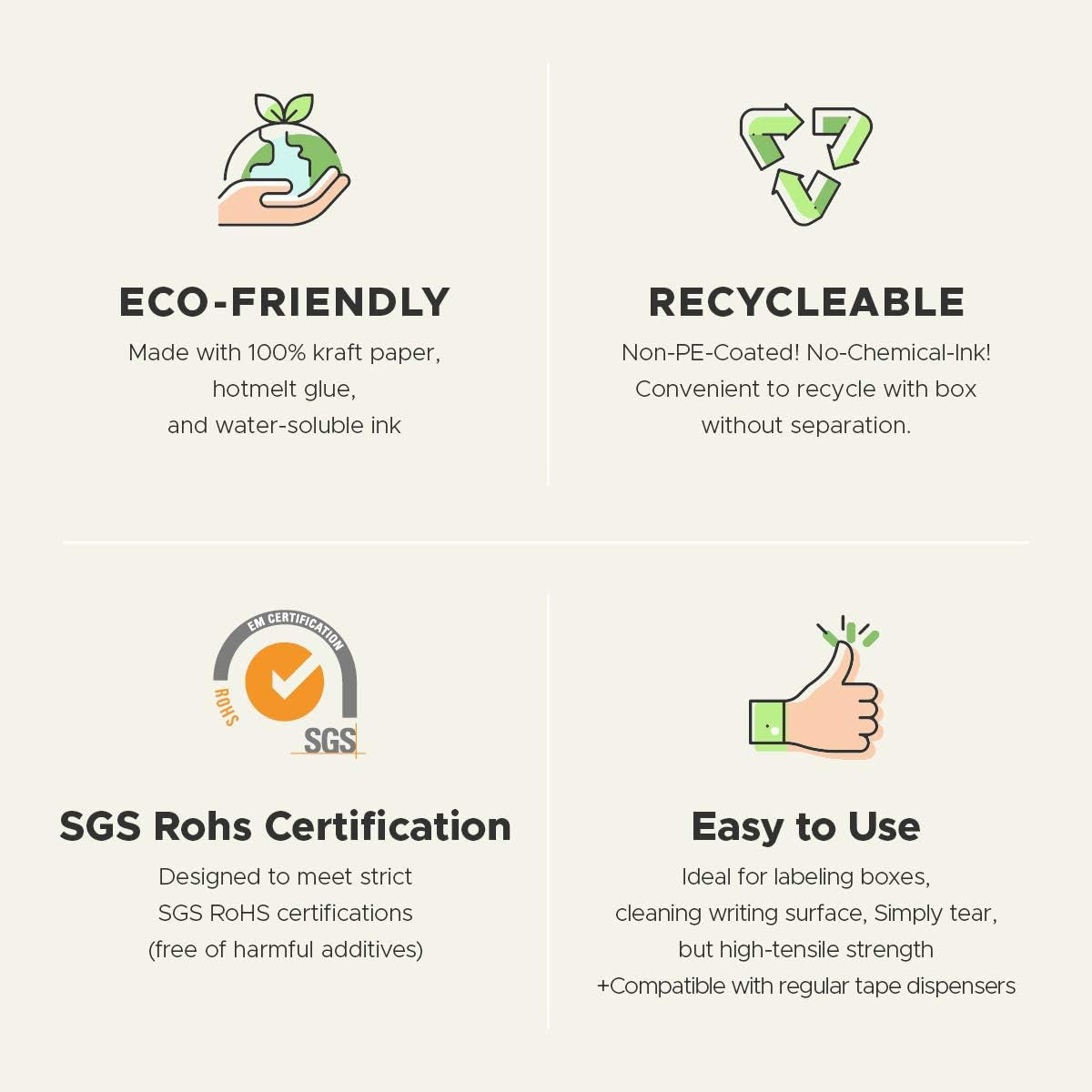 Easy to Use: Compatible with standard 2” tape dispensers; tears cleanly by hand—no scissors needed
