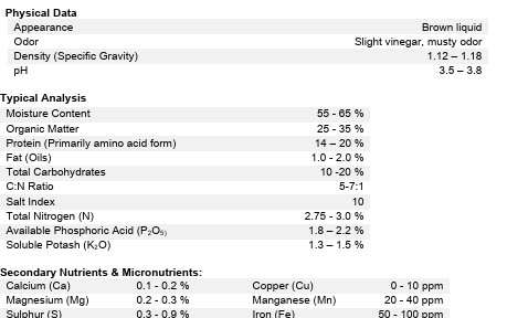 - Derived From: Food Protein Hydrolysate, Fish Protein Hydrolysate stabilized with Phosphoric Acid, and Potassium Sulfate
