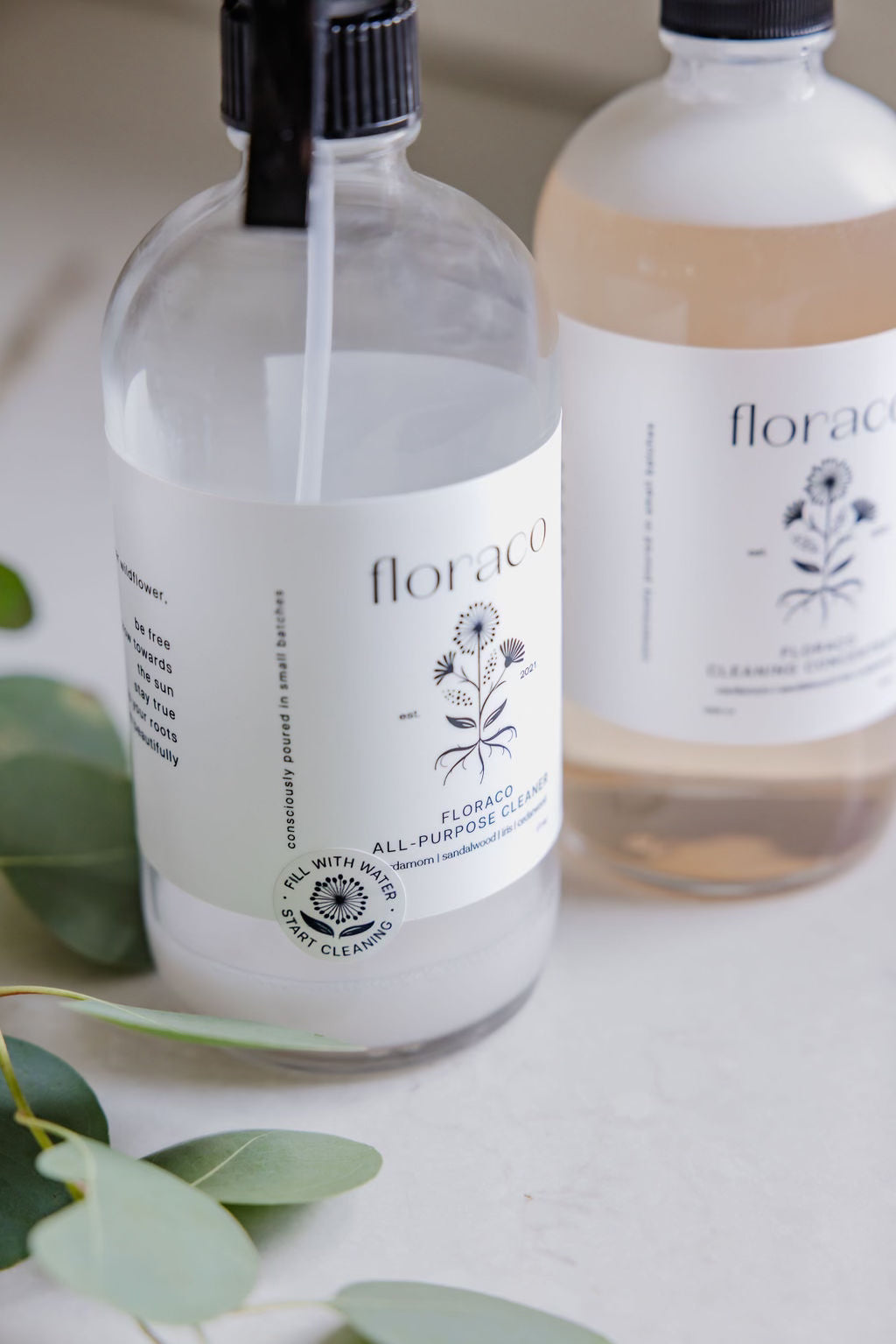 Clean surroundings lend themselves to a clean mind. Our all-purpose cleaner is gentle on your senses, surfaces, and the environment while effectively cleaning up the dirt and grime that comes with life. The all-purpose cleaner is an excellent way to integrate the soothing and restorative Floraco aromatherapy blend into your home, workspace or studio. This product is excellent for the physical aspect of cleaning, but also for cleaning up the energy in the room and promoting a healthier mindset.