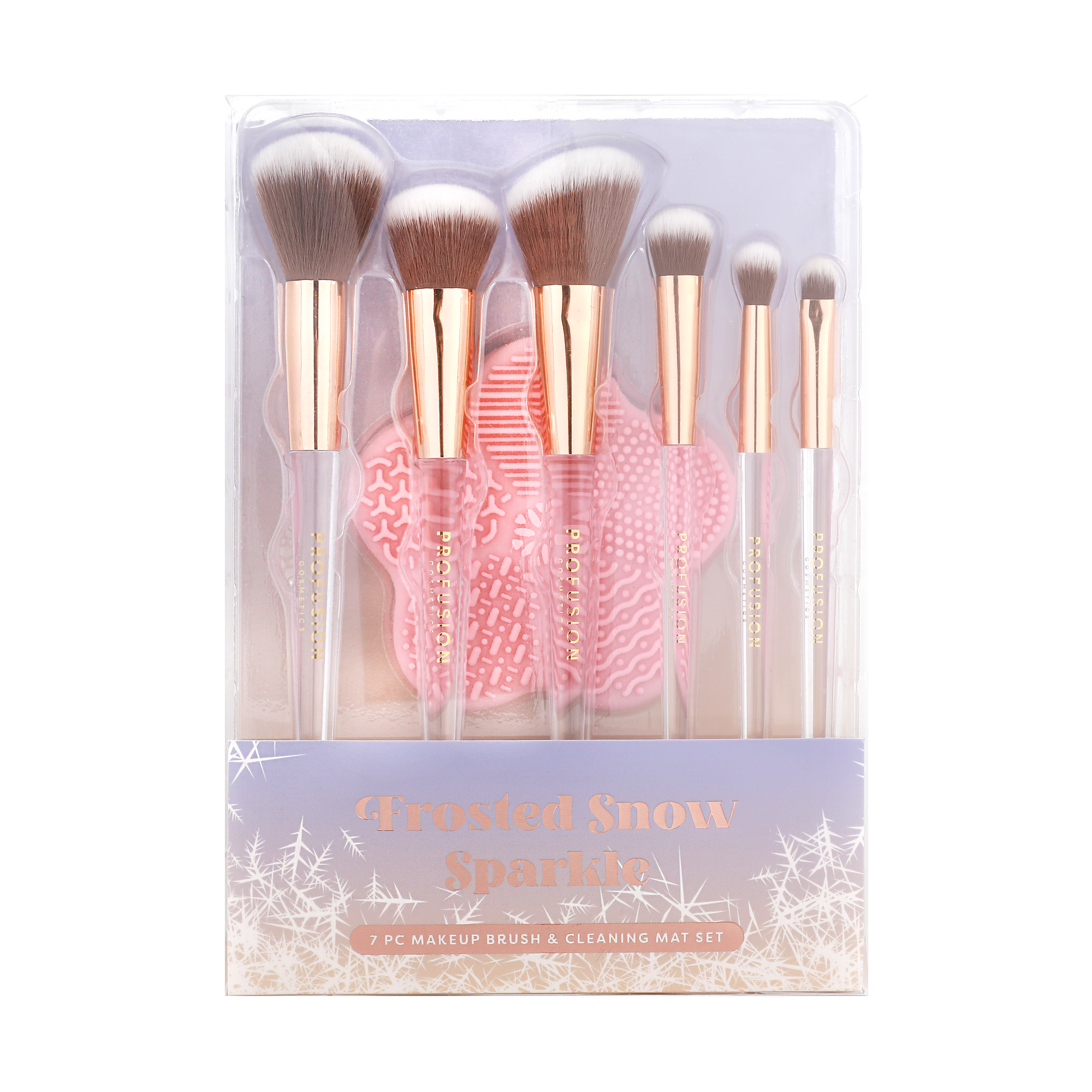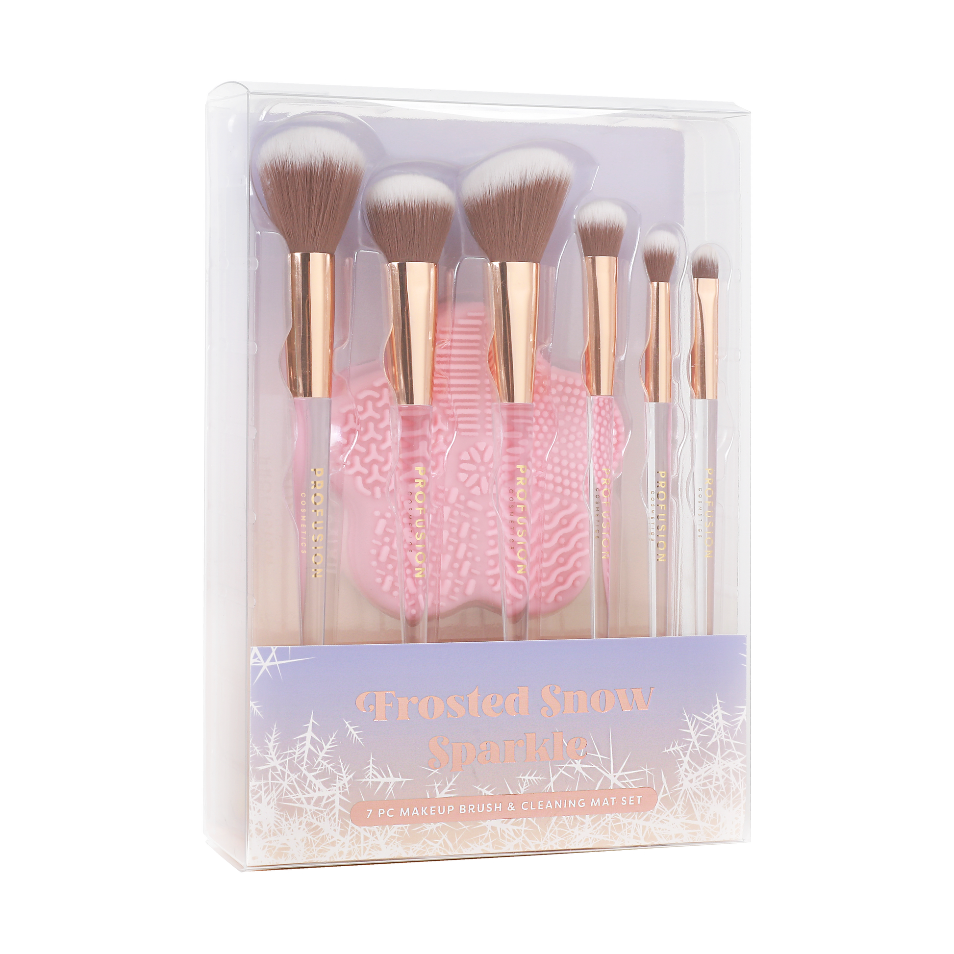 Frosted Snow Sparkle | 7 PC Makeup Brush & Cleaning Mat Set