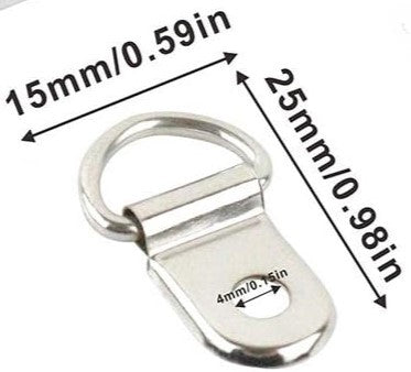 Approximately 4 inches wide, 4 inches high, and 1/8 inch thick. Ready to hang, with a D-ring attached to the back. The mini easel is also included.