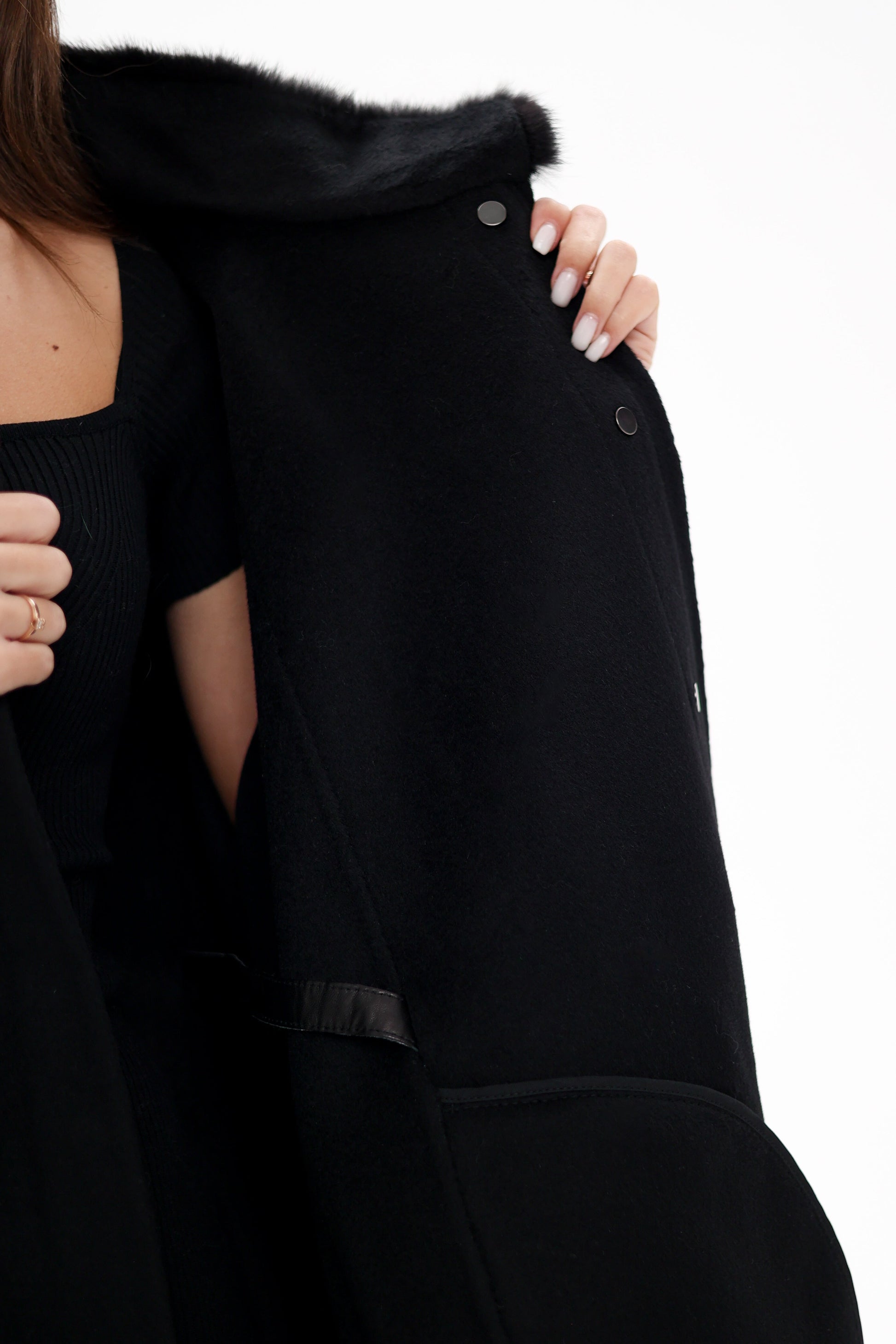 Genuine Scandinavian Mink Fur Double Face Wool Poncho