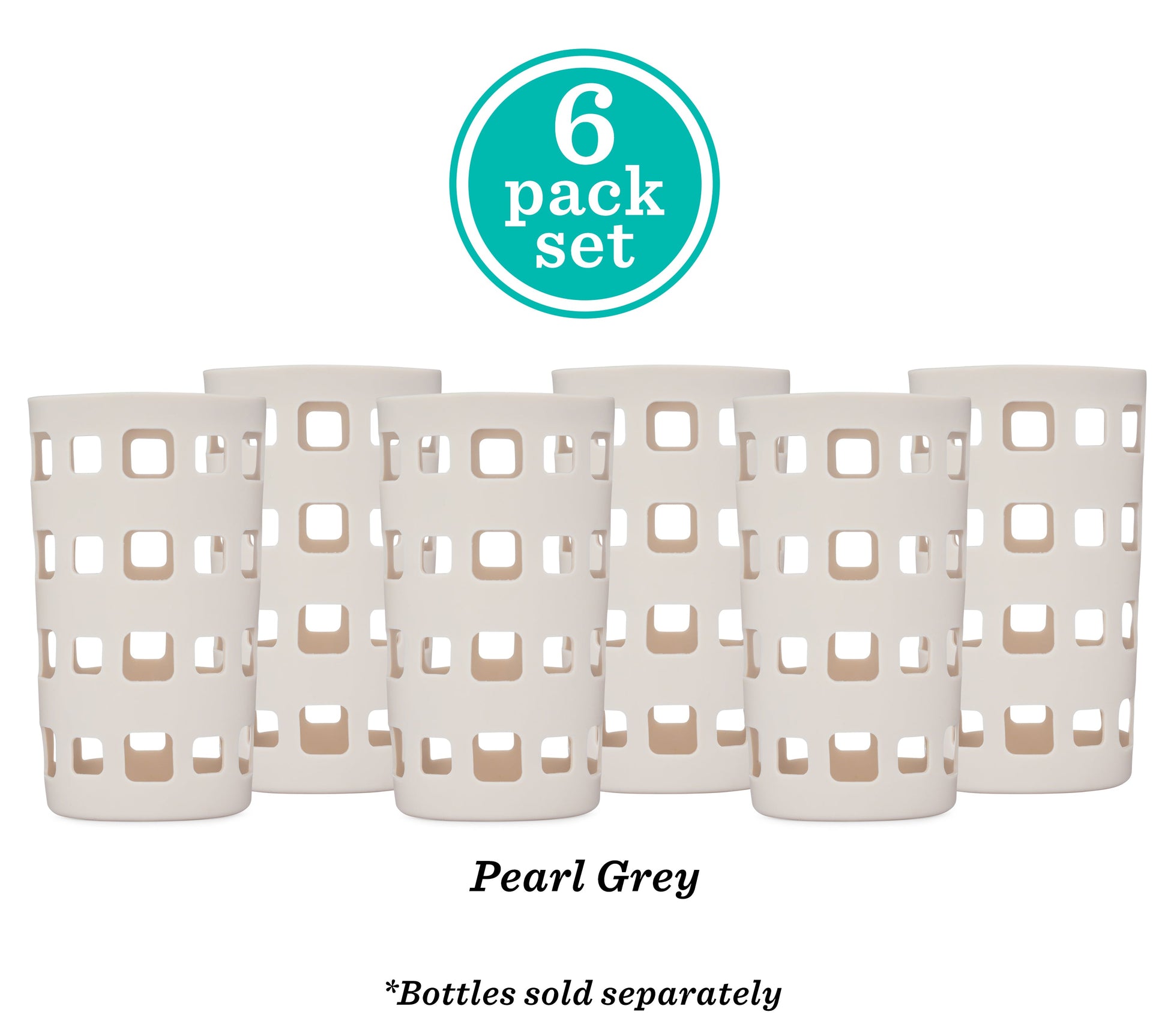 6-PACK SET OF PROTECTIVE SILICONE SLEEVES:  you'll get 6 silicone rubber sleeves for your 16 ounce glass bottles in the Geo Cube design; Your choice of 4 colors: Blues, Pinks, Tropical Vibes & Pearl Grey
