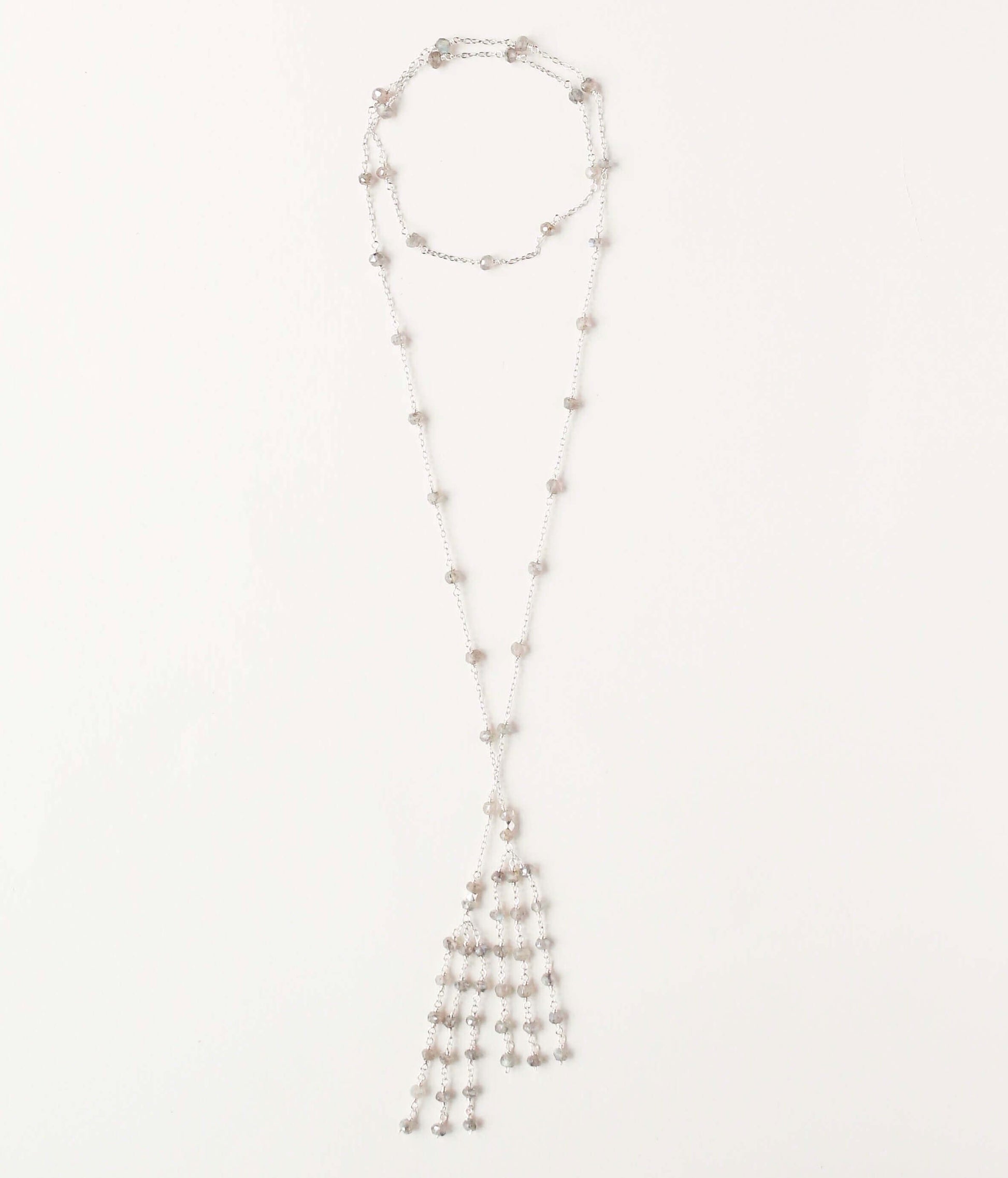 Delicate lariat necklace made with labradorite gemstones and finished off with a beautiful tassel design.