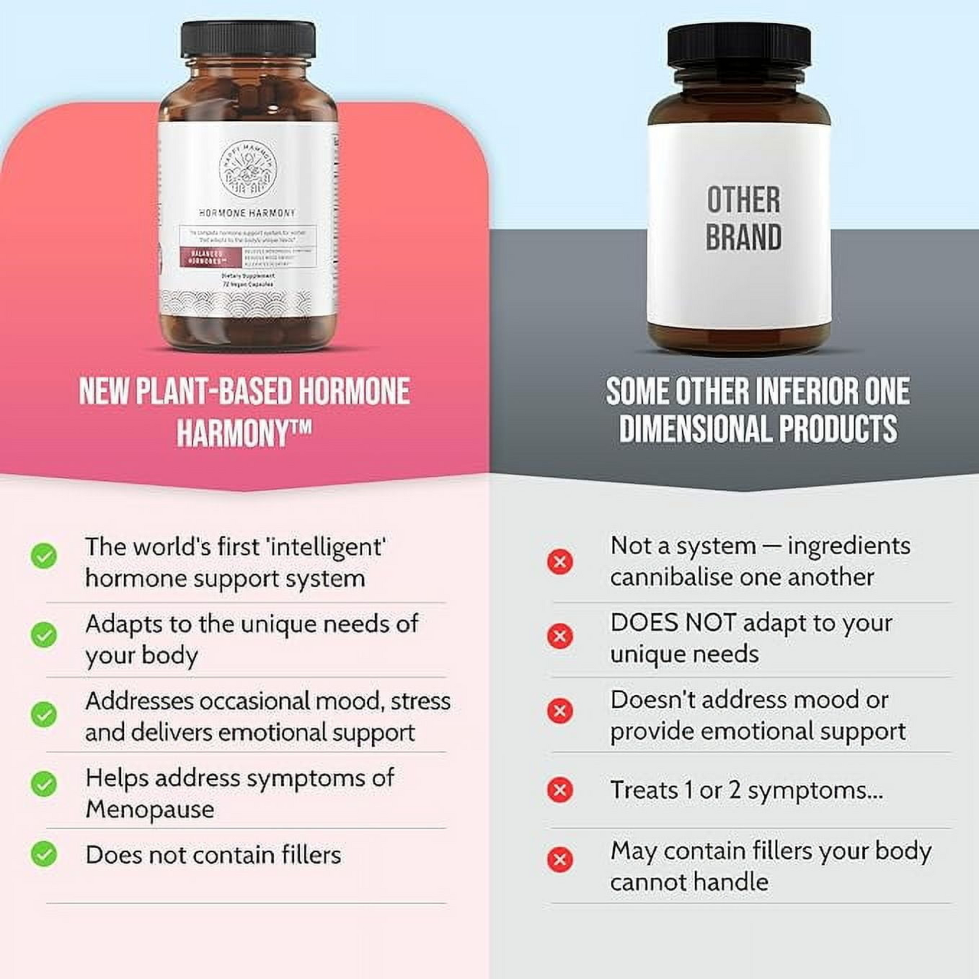 Happy Mammoth Hormone Harmony is a plant-based supplement designed to support women navigating menopause and hormone-related changes. Each bottle contains 72 vegan capsules formulated with a proprietary herbal blend to help ease common symptoms such as hot flashes, mood swings, and hormone-related weight gain.
